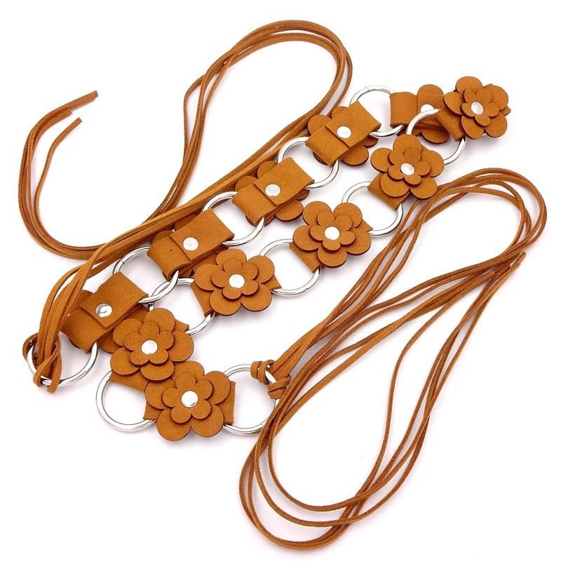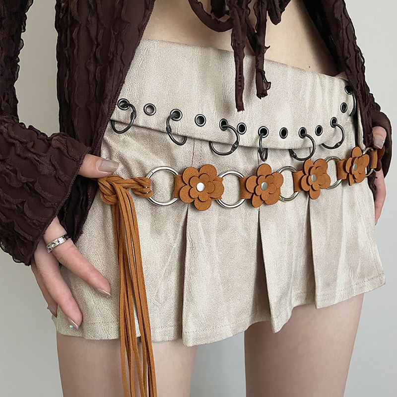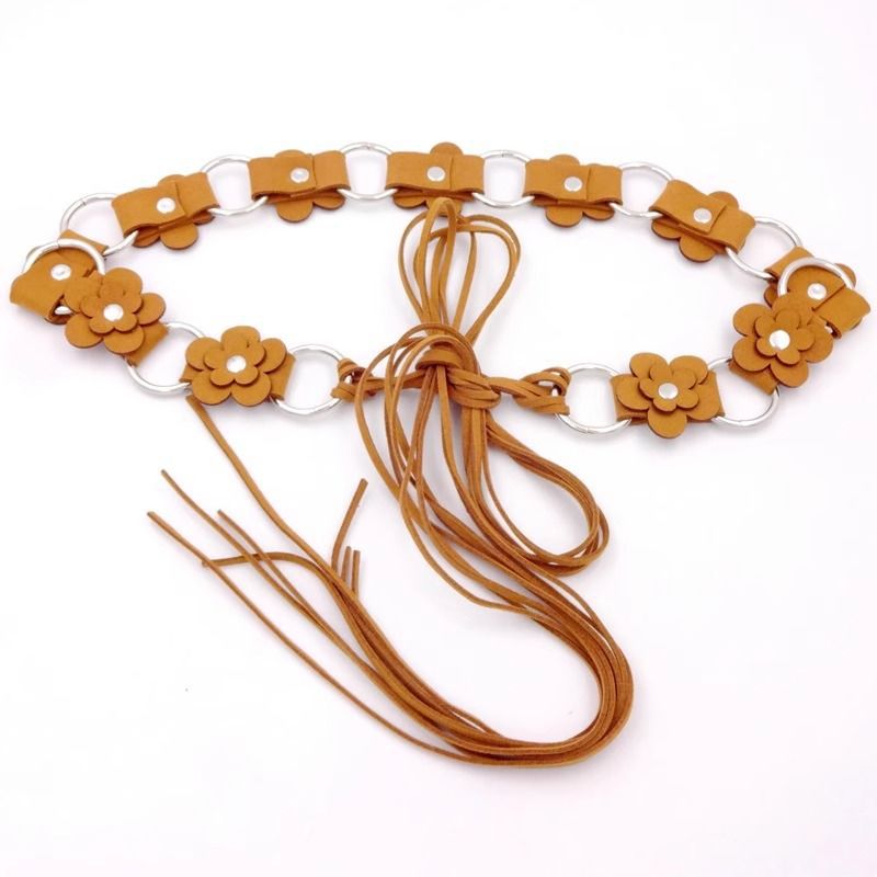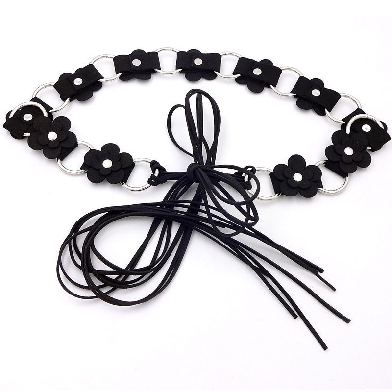 花朵铆钉腰链女士时尚百搭腰带装饰连衣裙甜美桃花金属链条韩版裙