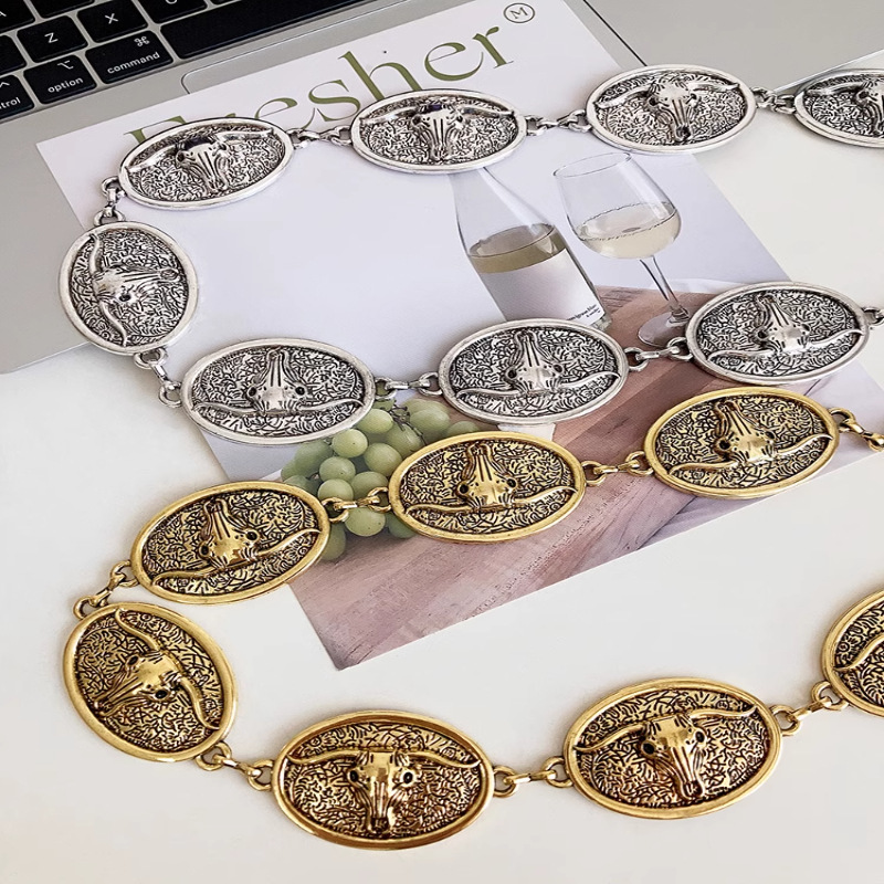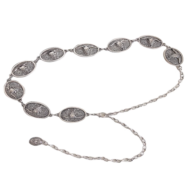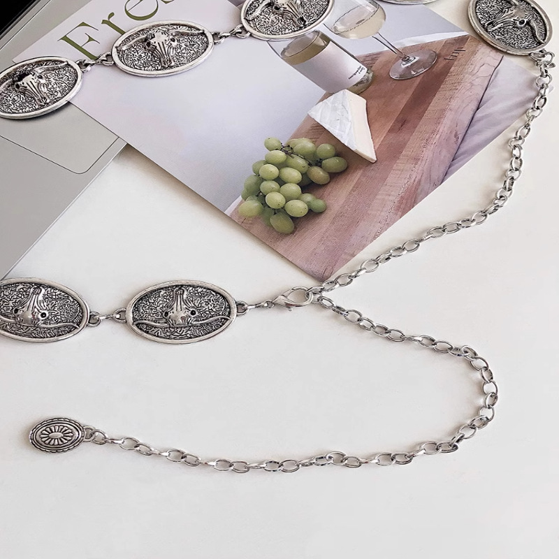 欧美复古金属牛头腰链女款时尚百搭裙子装饰ins潮流雕花链条皮带
