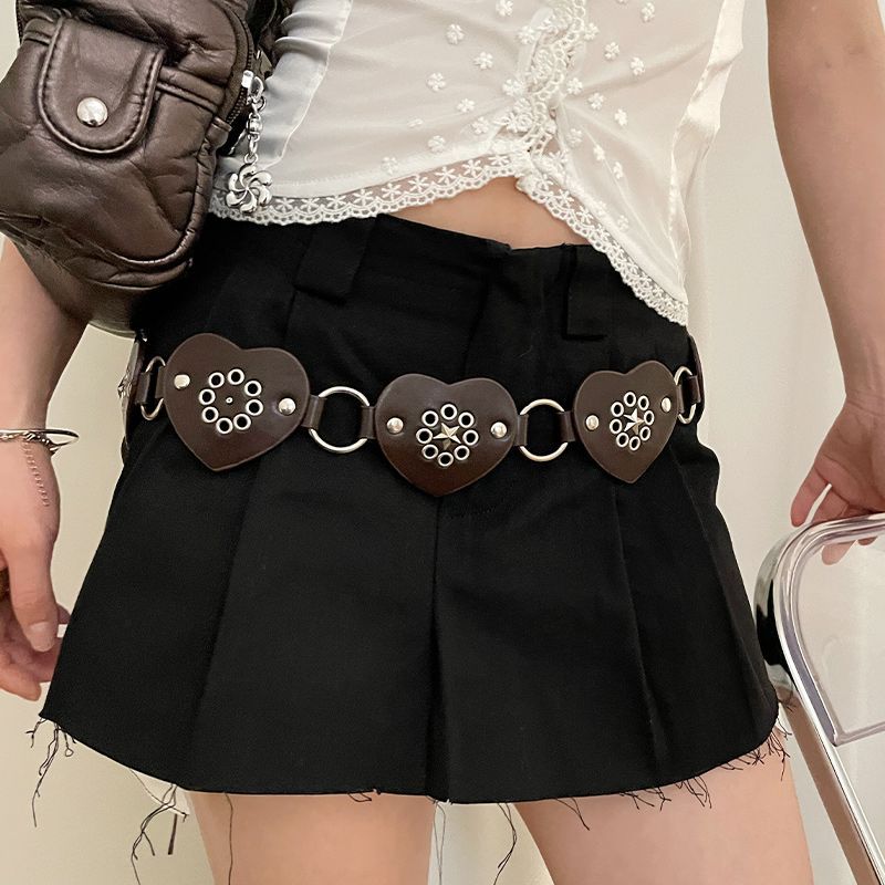美式复古千禧辣妹风腰带爱心圆环拼接设计感裤带配裙子牛仔裤皮带