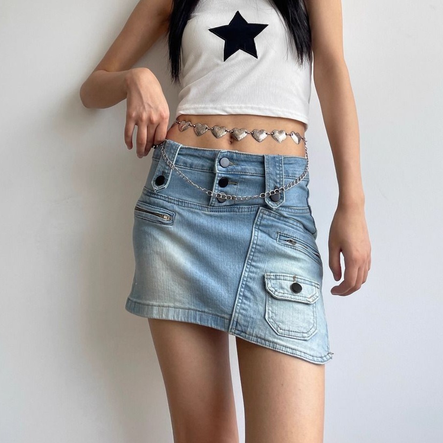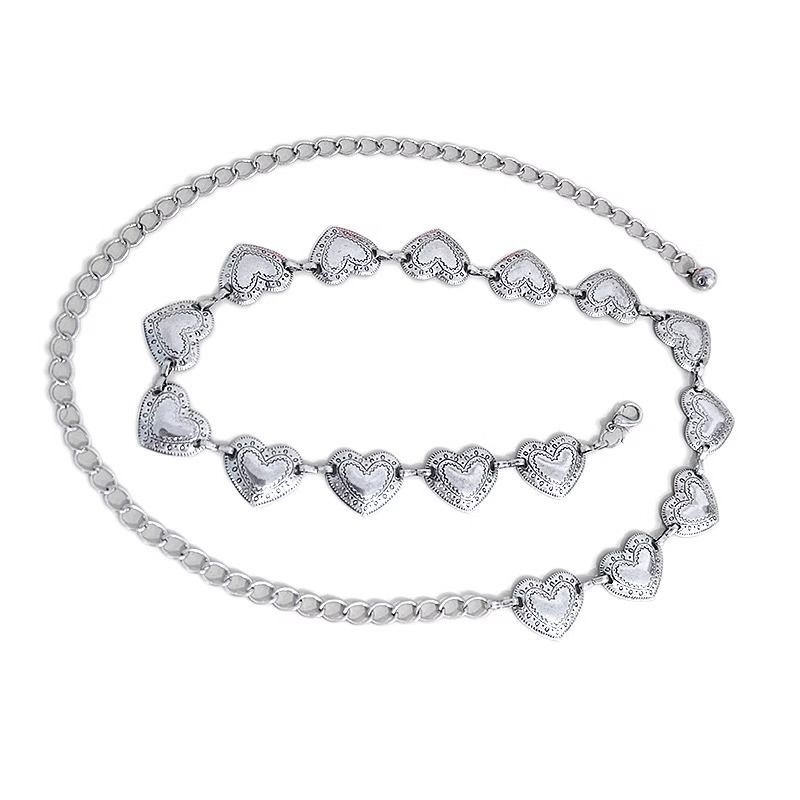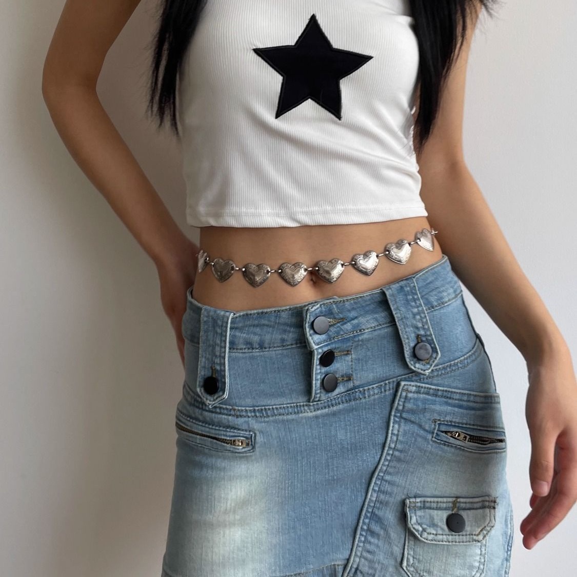 休闲复古性感辣妹金属爱心腰链原宿风y2k女士连衣裙装饰链条腰带
