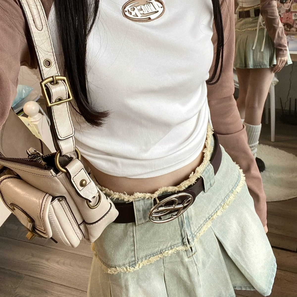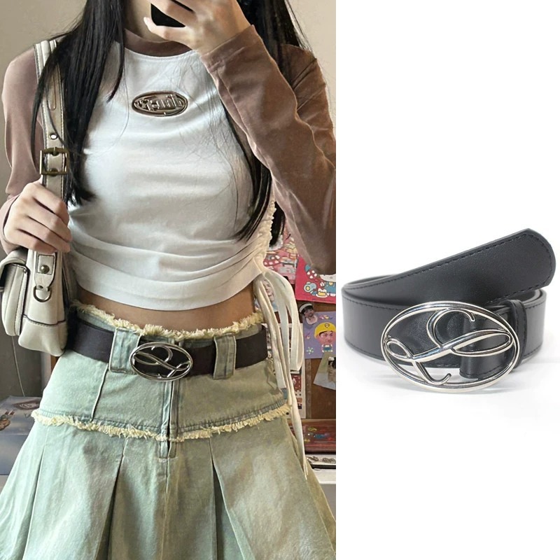 辣妹设计感美式几何Logo金属扣头皮带23SS少女潮百搭小众配饰腰带