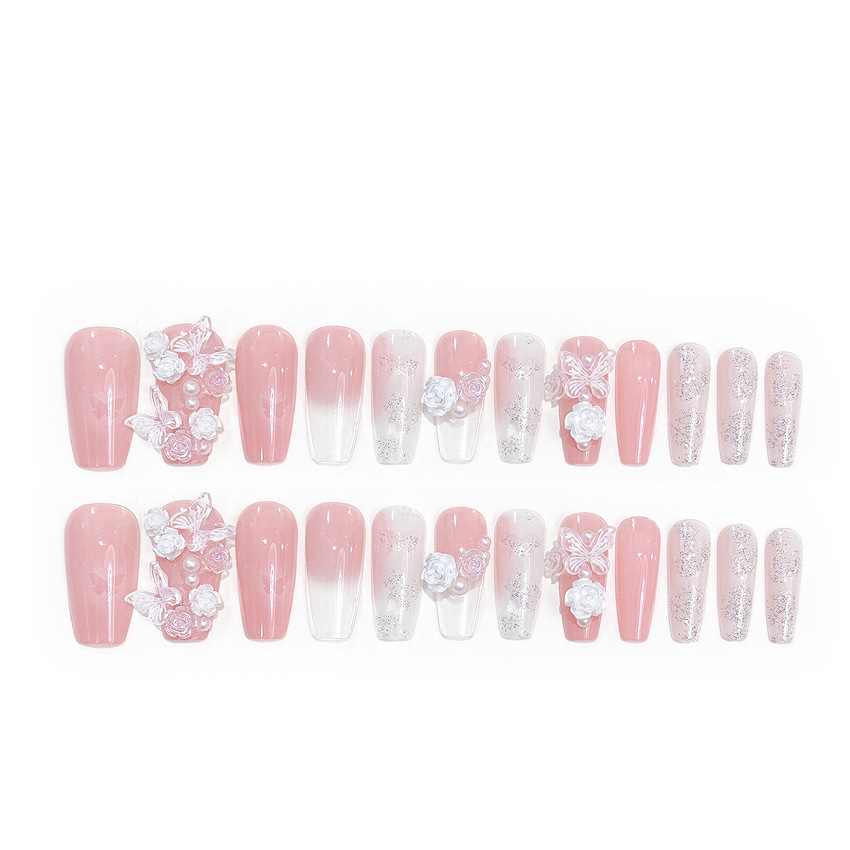 新款美甲穿戴甲片富家千金指甲贴片花朵蝴蝶假指甲成品甲批发U39