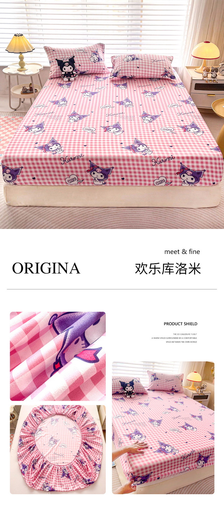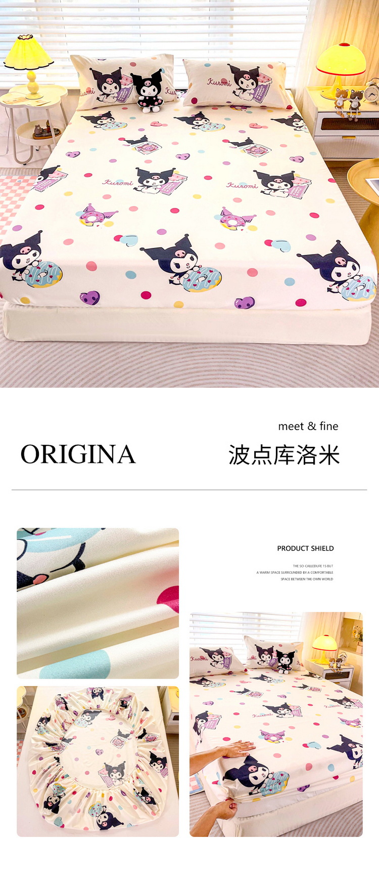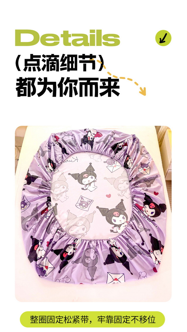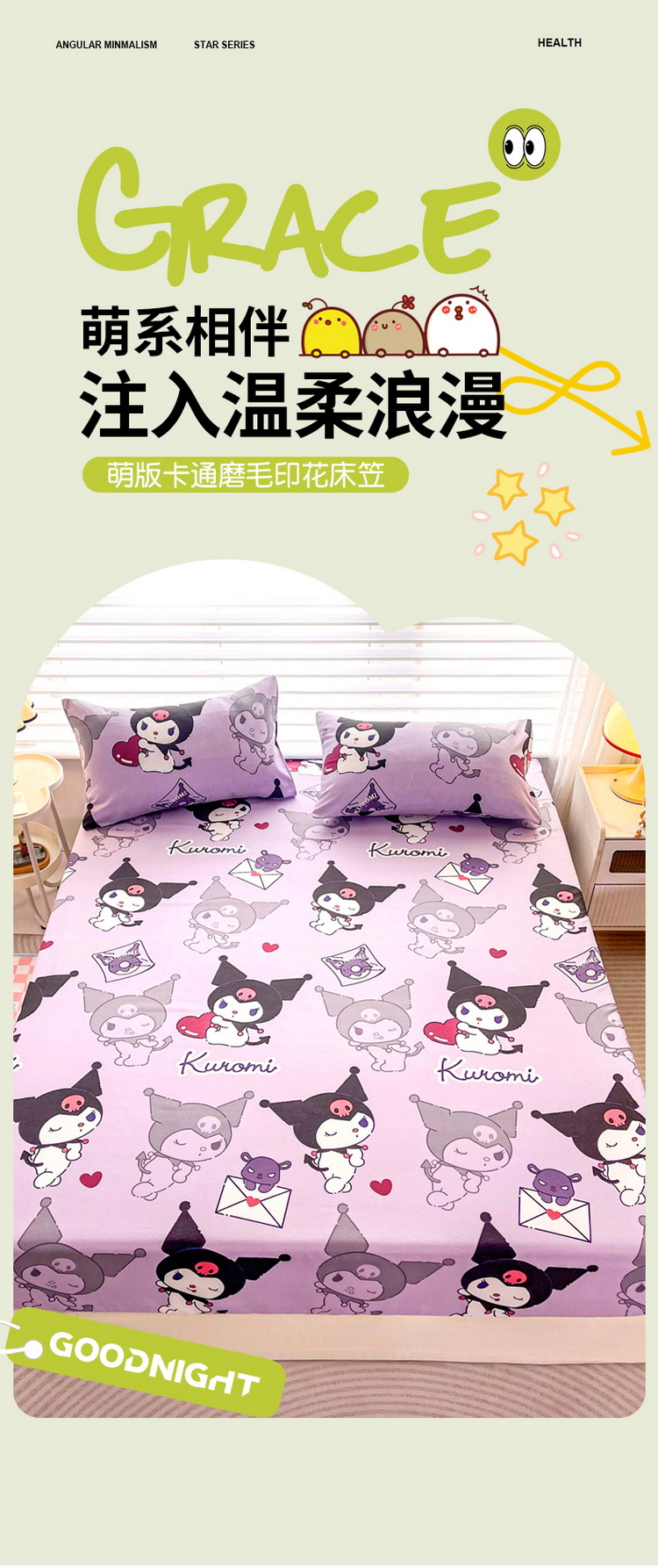 跨境四季款三丽鸥卡通床笠单件床罩磨毛床垫套防滑套儿童学生床单