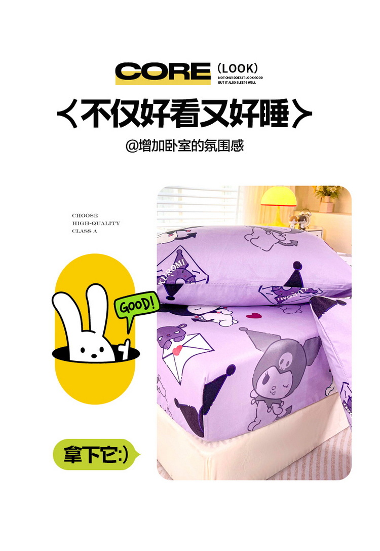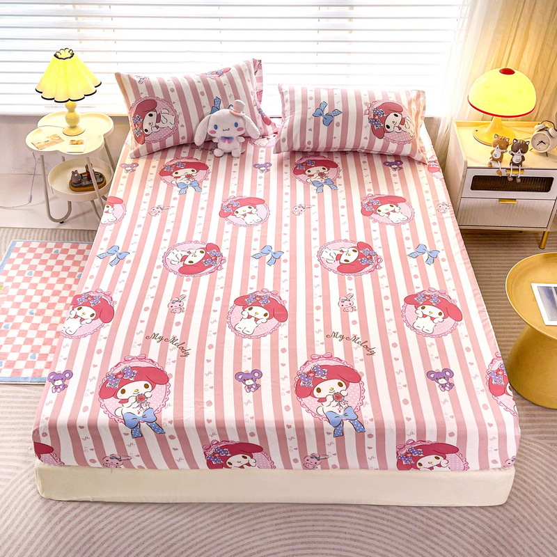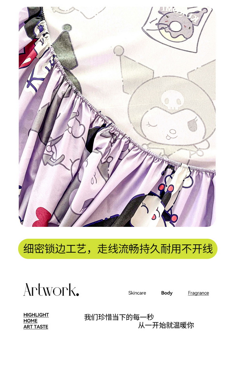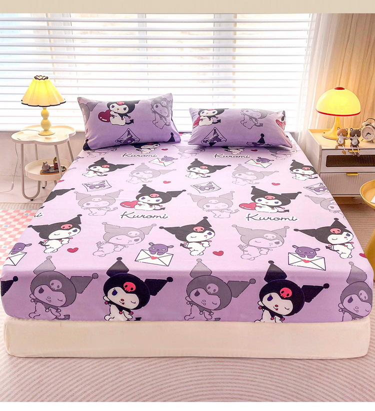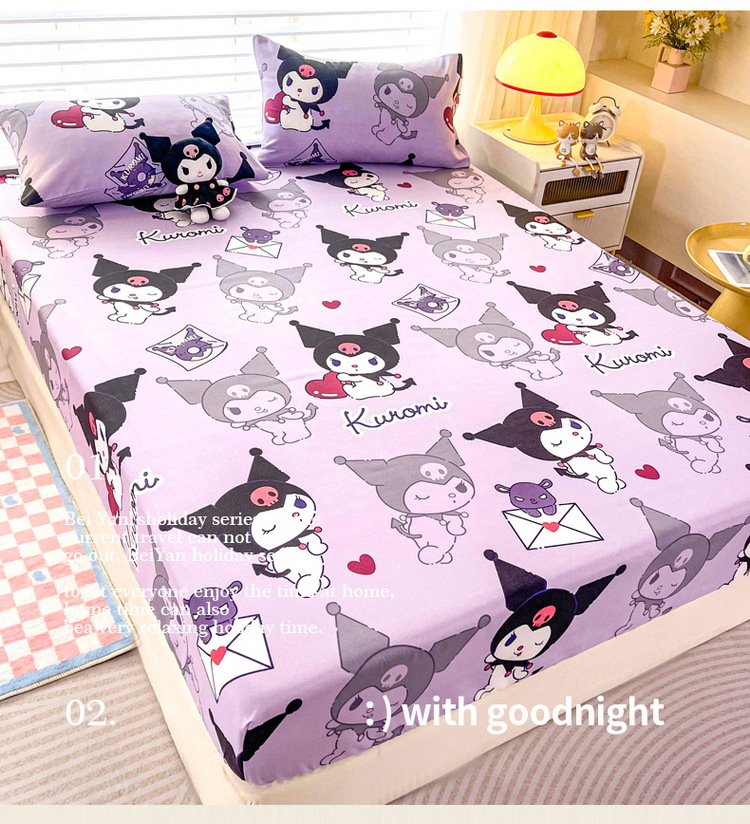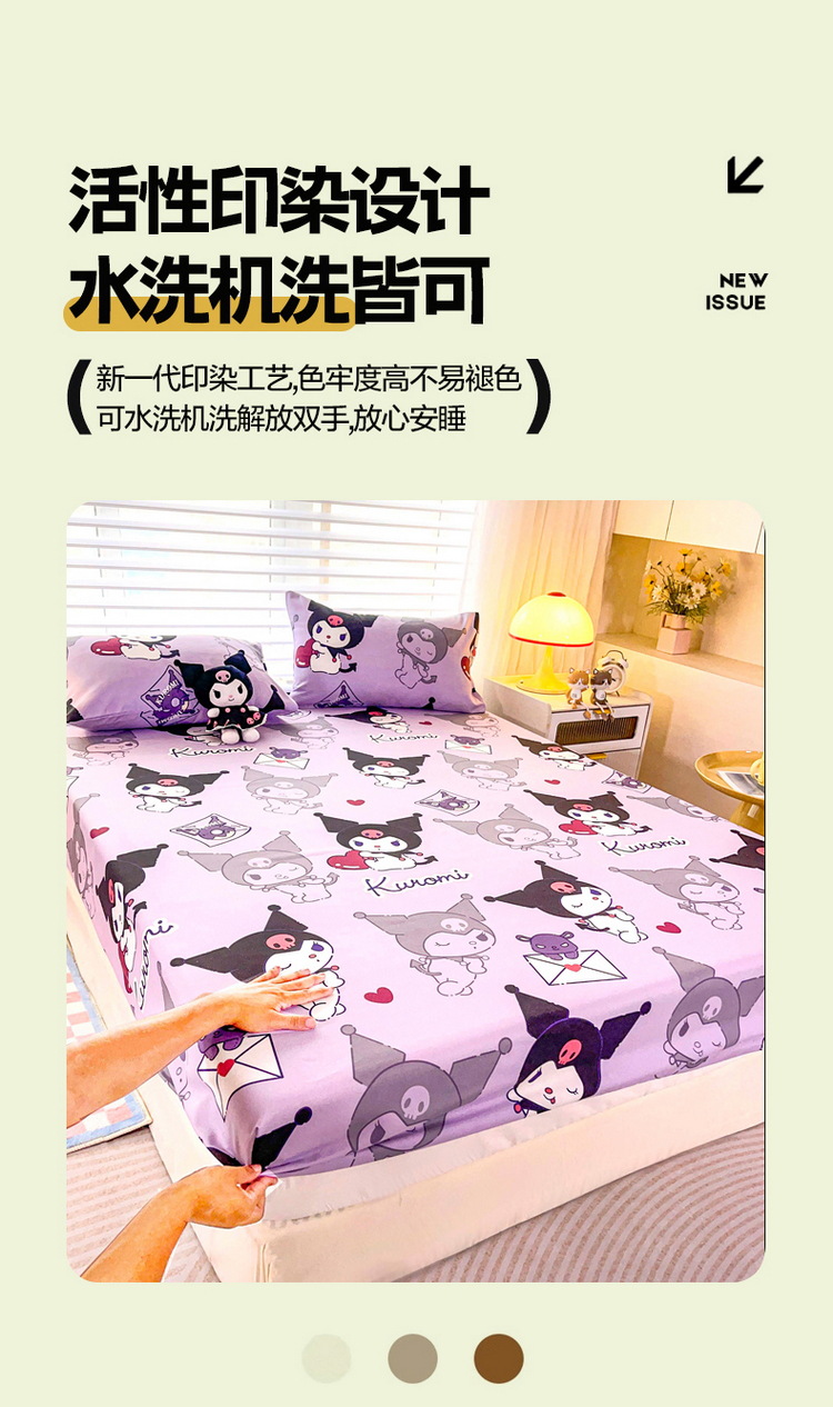 跨境四季款三丽鸥卡通床笠单件床罩磨毛床垫套防滑套儿童学生床单