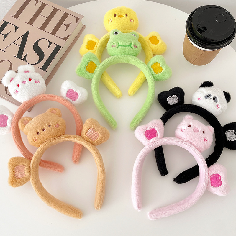 可爱卡通毛绒公仔发箍熊猫小鸡鸭子青蛙头箍小熊兔子搞怪发卡头饰