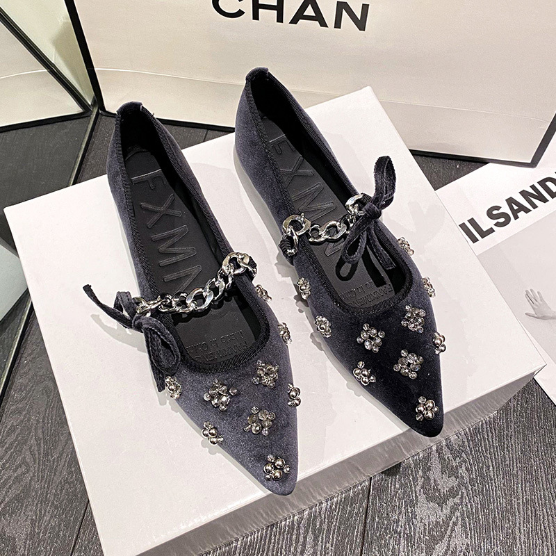 法式玛丽珍单鞋女尖头平底新款春季鞋子气质黑色配裙子晚晚鞋