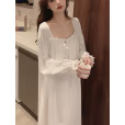 睡衣女公主风长裙夏天纯色复古宫廷风睡裙家居服性感蕾丝睡衣长裙