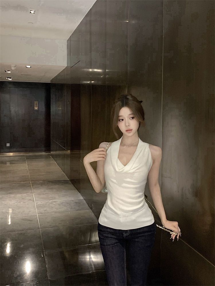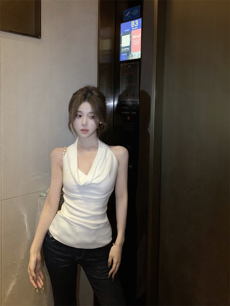 【来版可做】纯欲风性感挂脖吊带背心女夏季修身白色无袖露背上衣