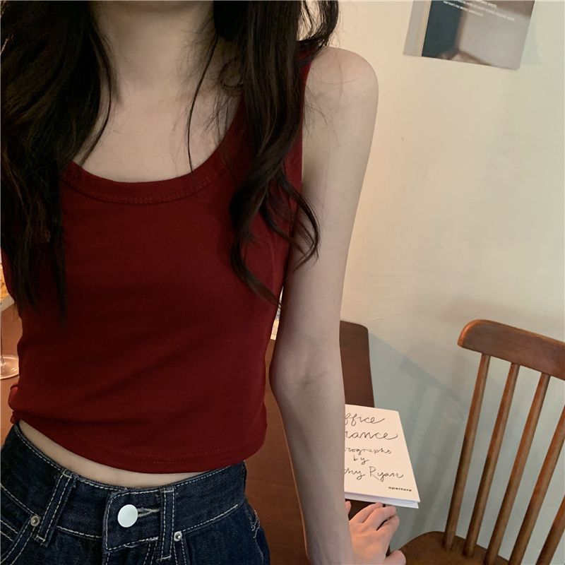 红色小吊带背心女夏季外穿辣妹超火运动短款打底内搭无袖T恤上衣