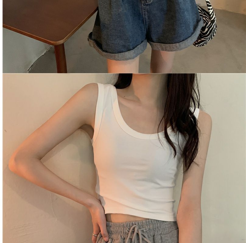 纯棉吊带背心女夏季外穿新款条纹抹胸打底辣妹带胸垫短款上衣