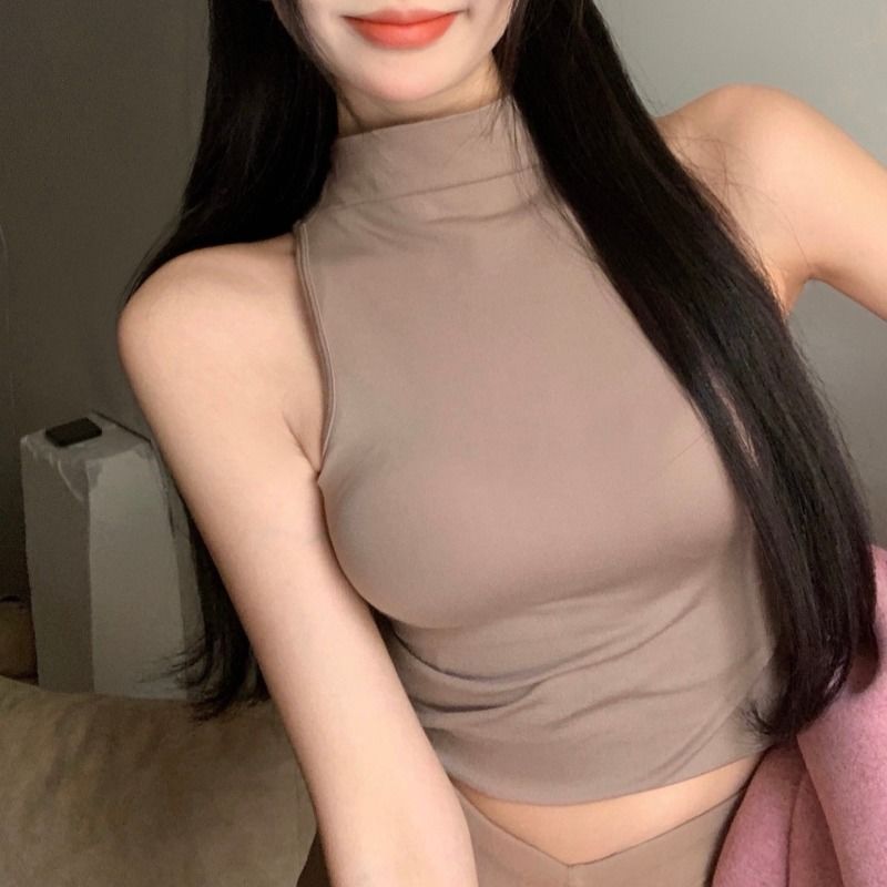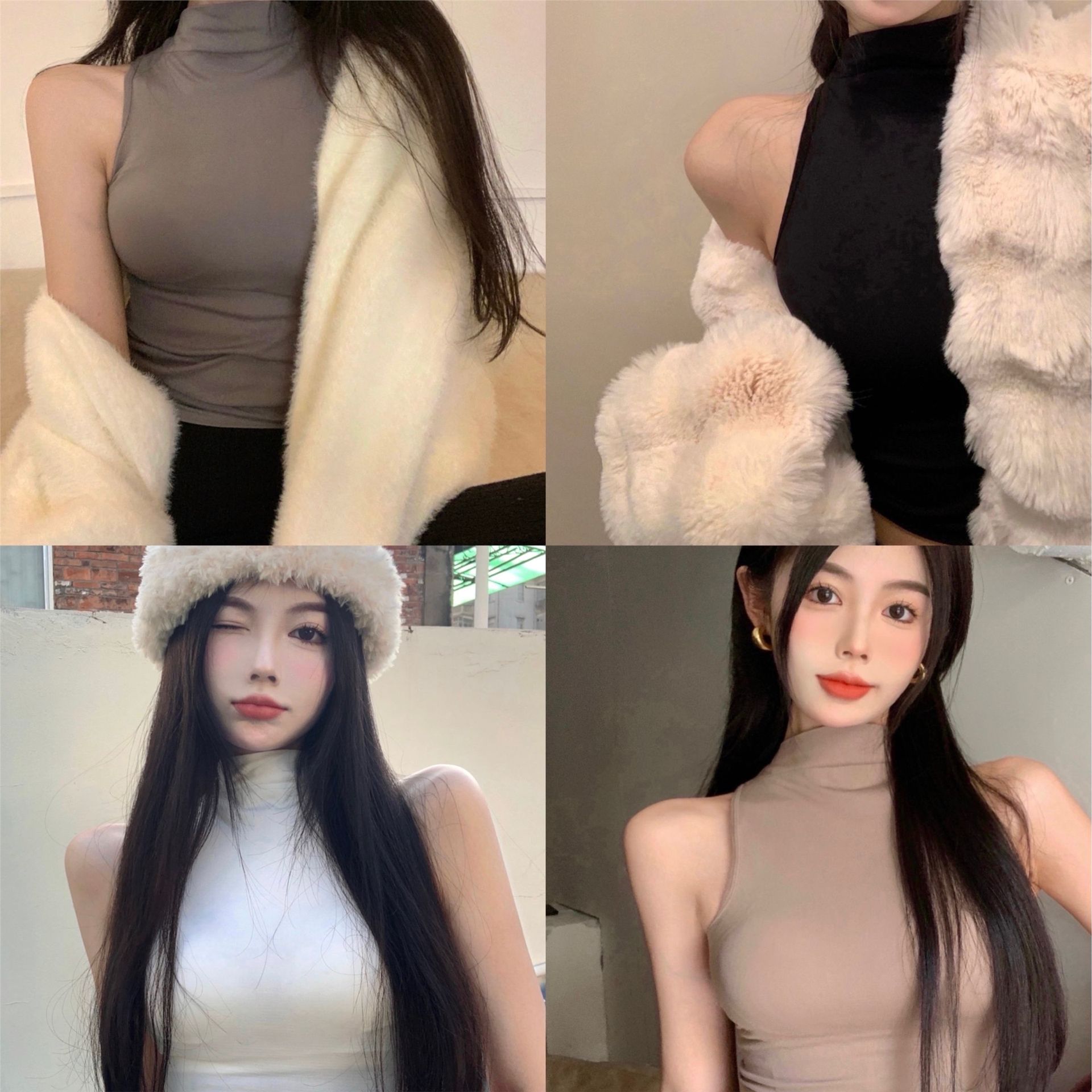 欧美风韩系穿搭ins辣妹半高领内搭无袖上衣设计感显瘦背心打底衫