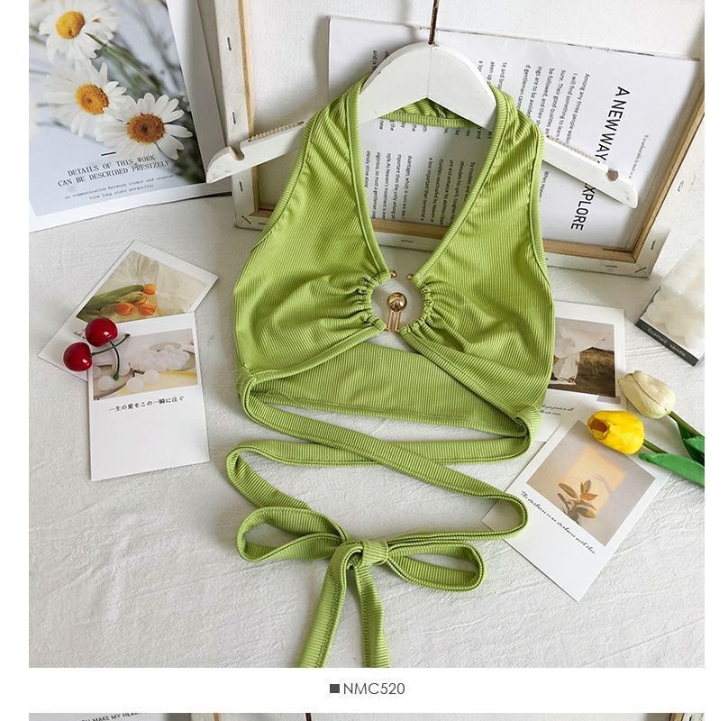 【全网低价】纯欲辣妹短款挂脖抹胸背心2025夏蝴蝶结系带露背吊带