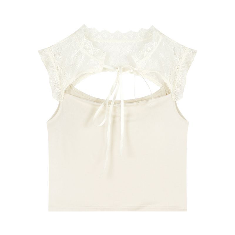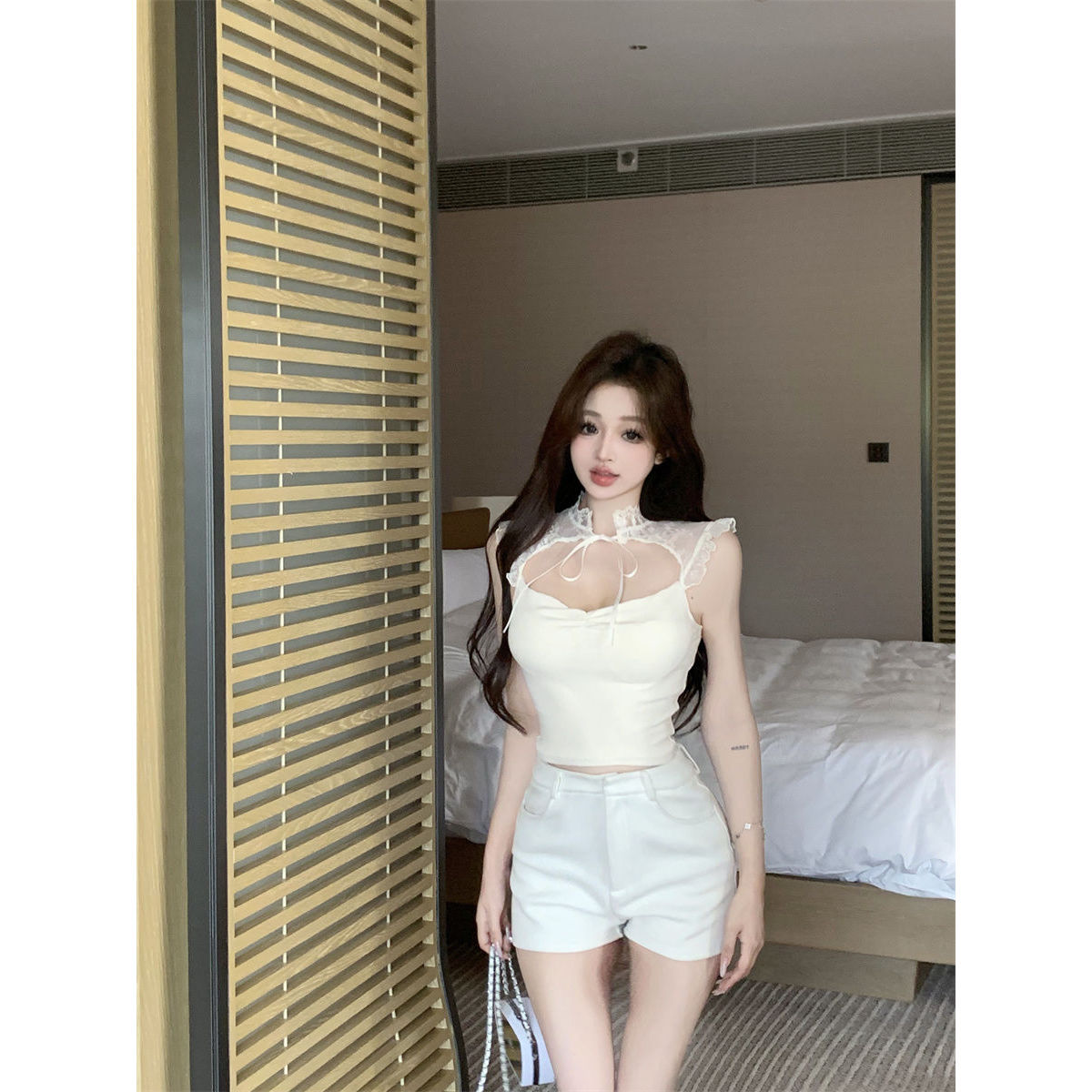 【跨境批发】新款性感女装纯欲风背心蕾丝拼接设计感显胸大上衣夏