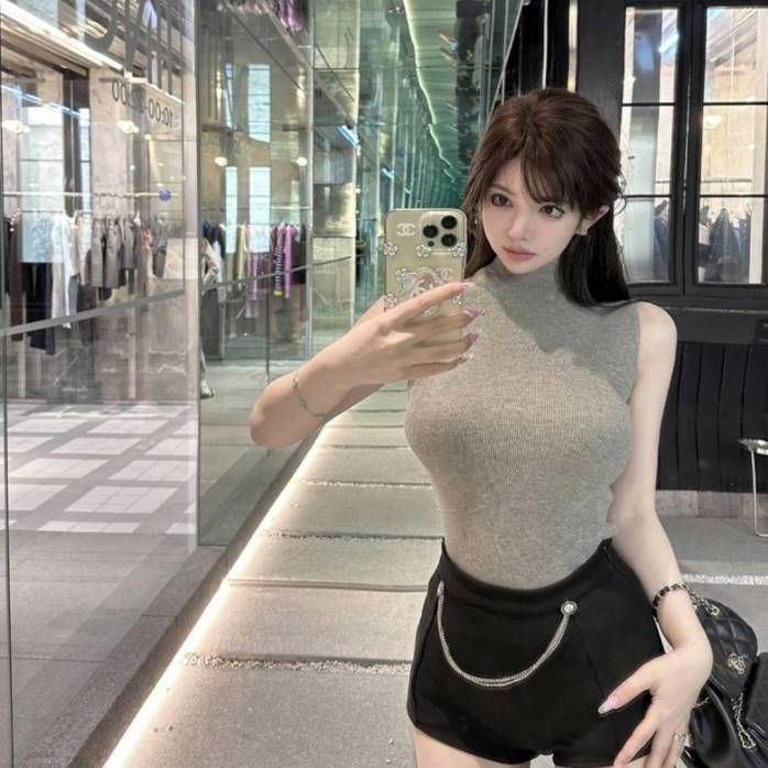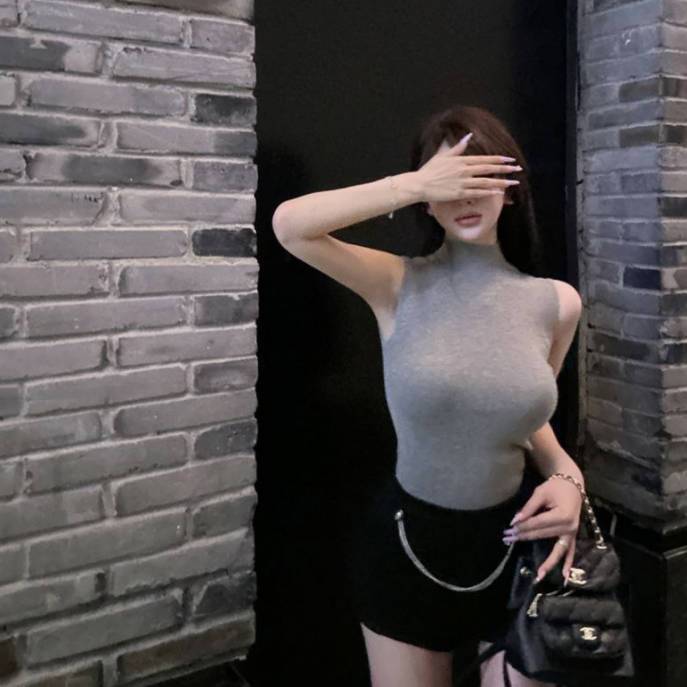 辣妹半高领薄款吊带背心女装夏季无袖内搭紧身显瘦短款上衣打底衫