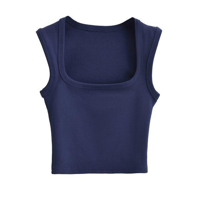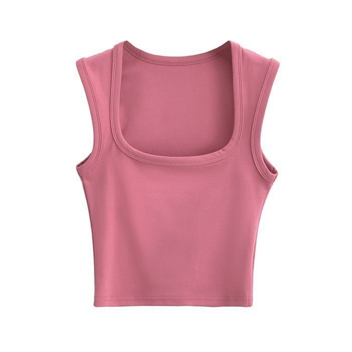 欧美风2025新款辣妹性感方领低胸修身高腰短款修身弹力打底背心