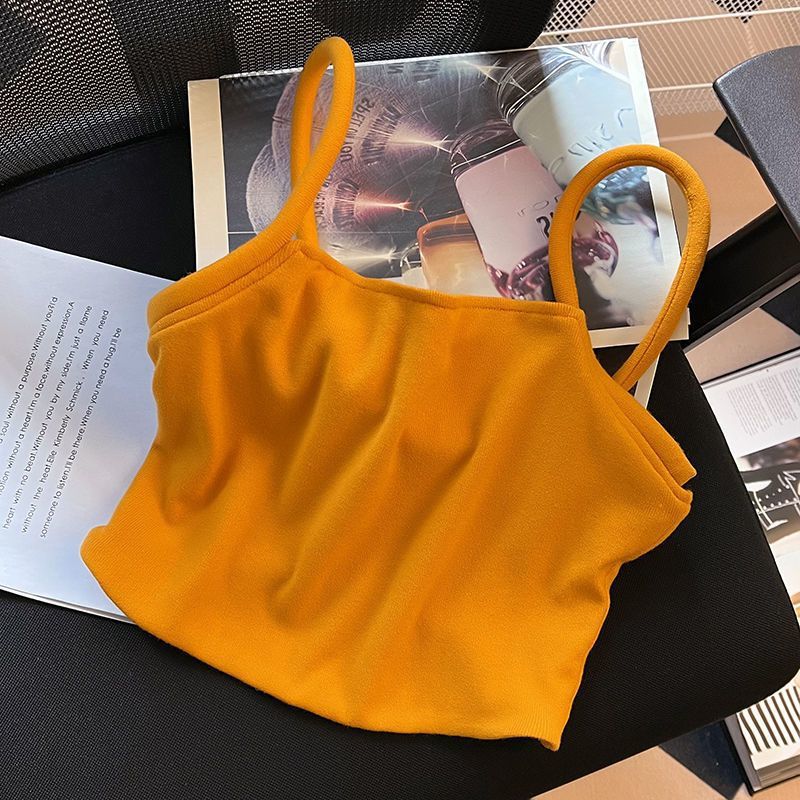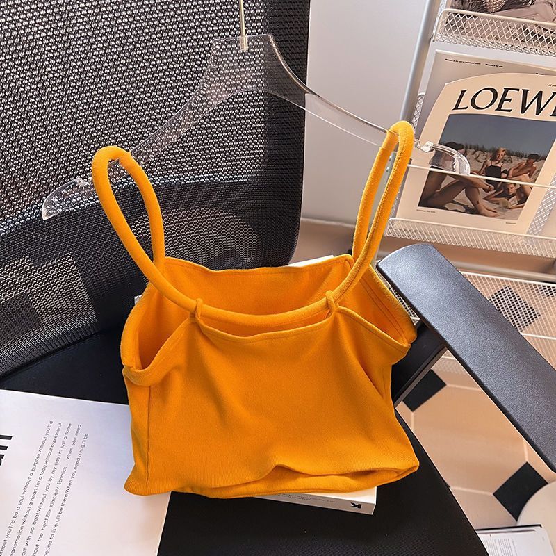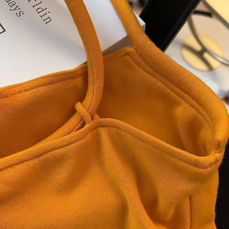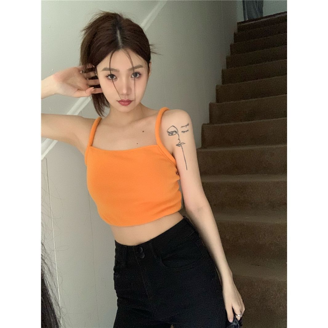 高级感橙色吊带背心女2025夏季新款小众性感别致纯欲短上衣女韩版