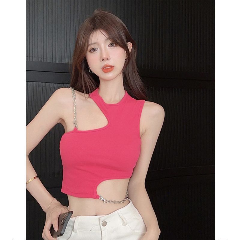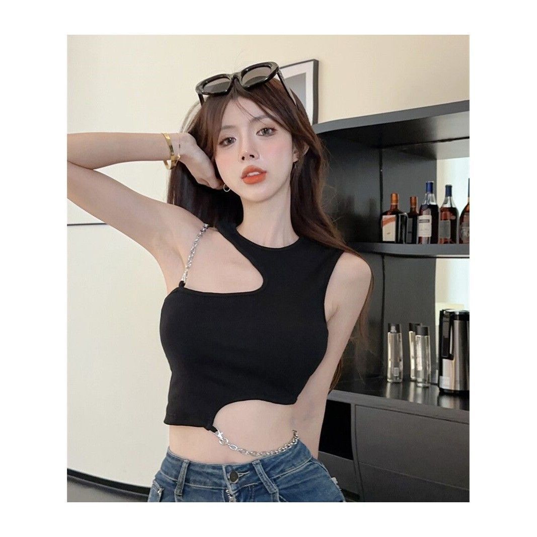 新款不规则设计感小众纯欲风短款上衣女甜酷辣妹修身性感背心外穿