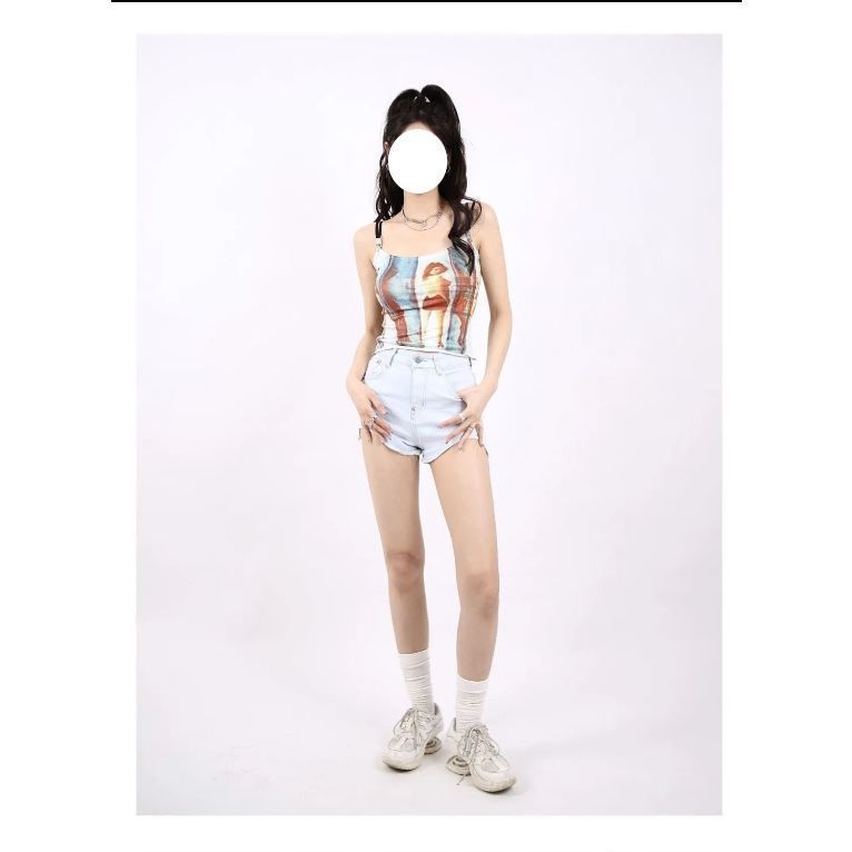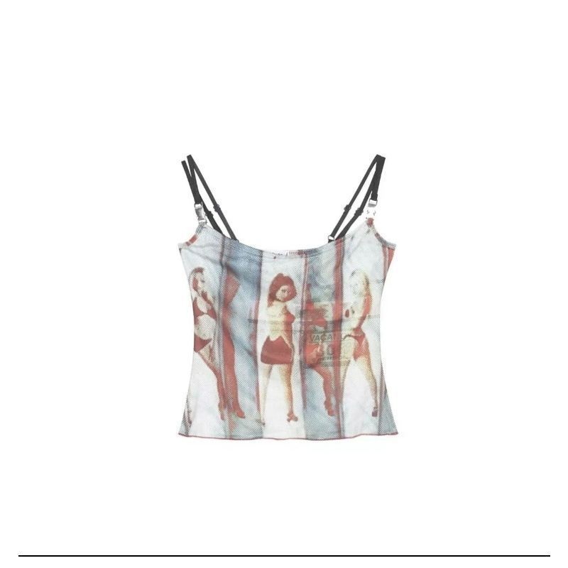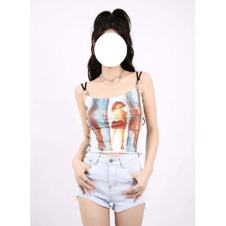 2025新款女装美式复古辣妹印花背心韩版吊带辣妹修身显瘦短款上衣