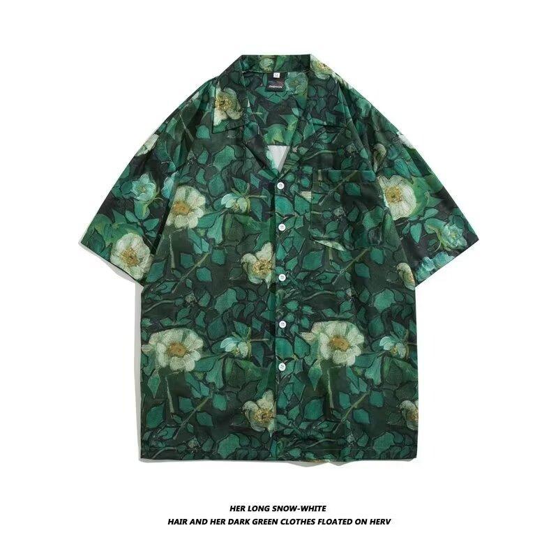 痞帅花衬衫男短袖夏季新款潮牌高级感中袖衬衣休闲五分袖开衫上衣