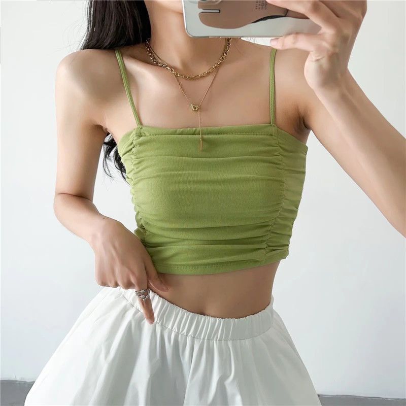 双层褶皱吊带背心女内搭欧美纯欲辣妹风穿搭紧身性感露脐抹胸上衣