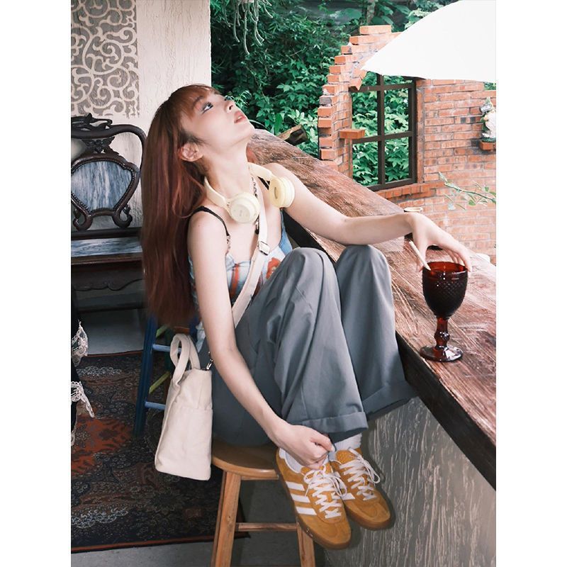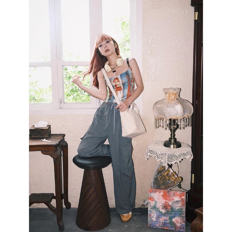 美式复古辣妹内搭性感吊带小背心夏新款设计感印花显瘦外穿上衣女