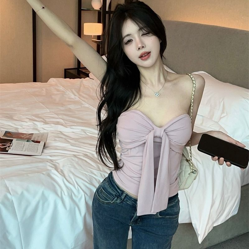 【全网低价】纽结抹胸背心修身短款辣妹上衣2025潮流新款法式女装