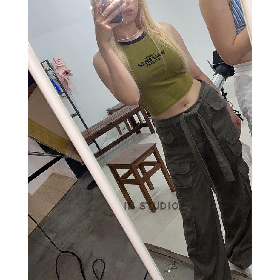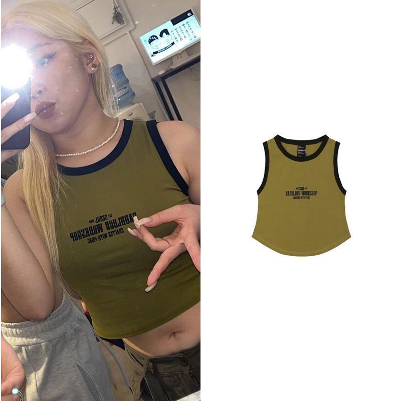 博主推荐~韩国设计感2025新款甜酷辣妹字母刺绣短款小吊带背心女