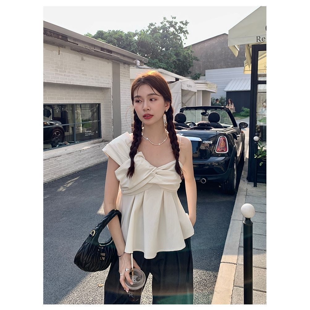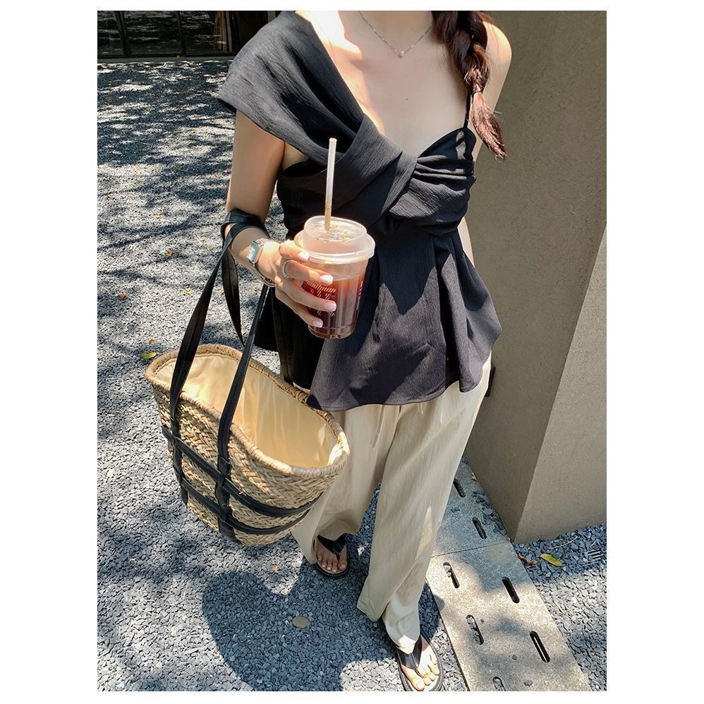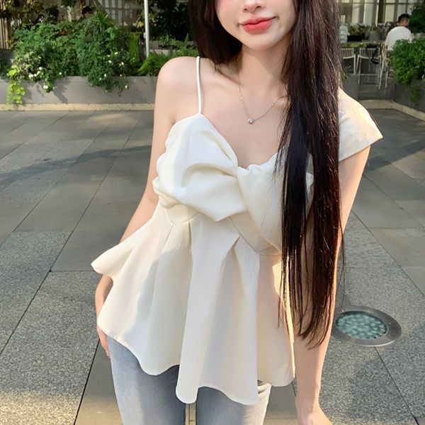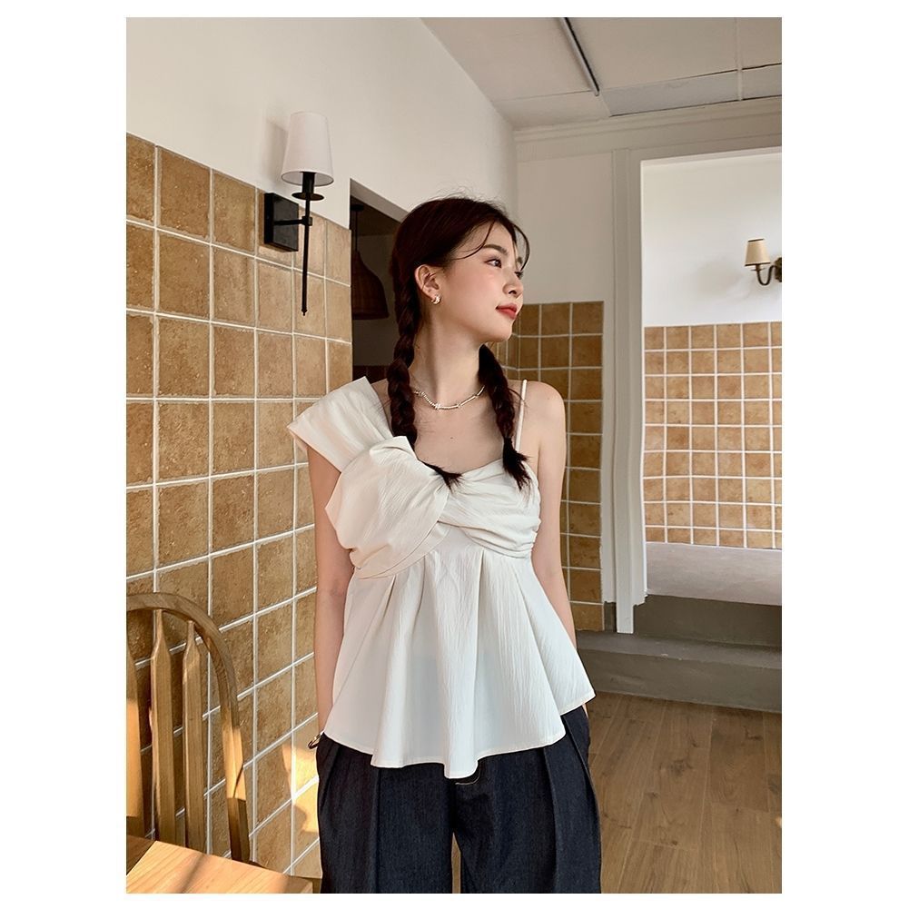 韩版简约气质优雅纯色吊带衬衫2025夏季新款设计感不规则显瘦上衣