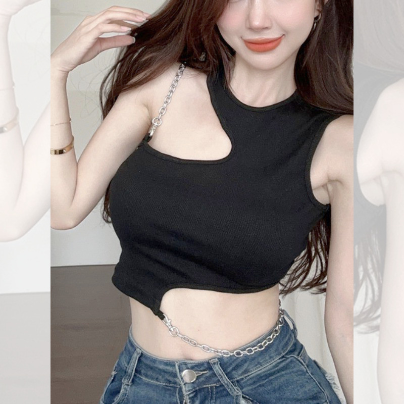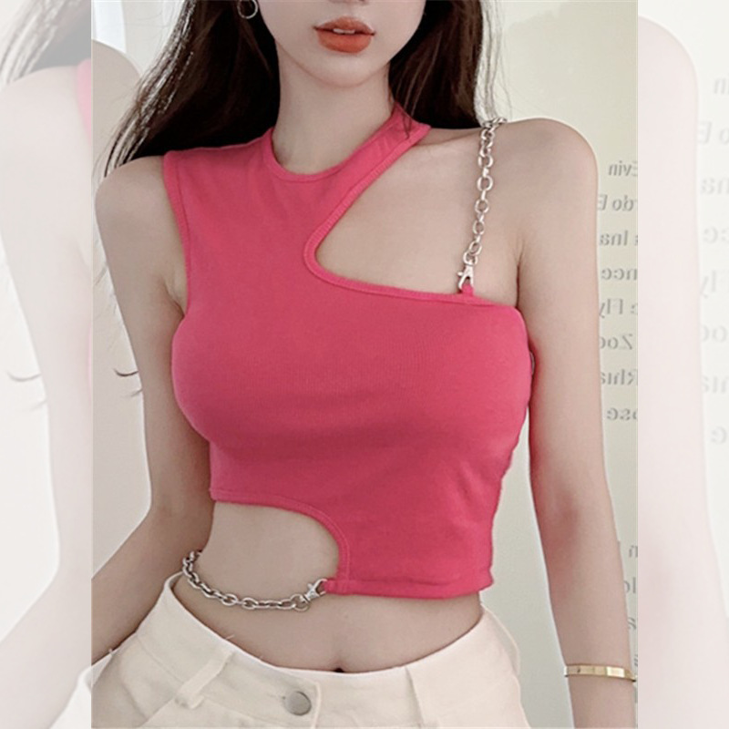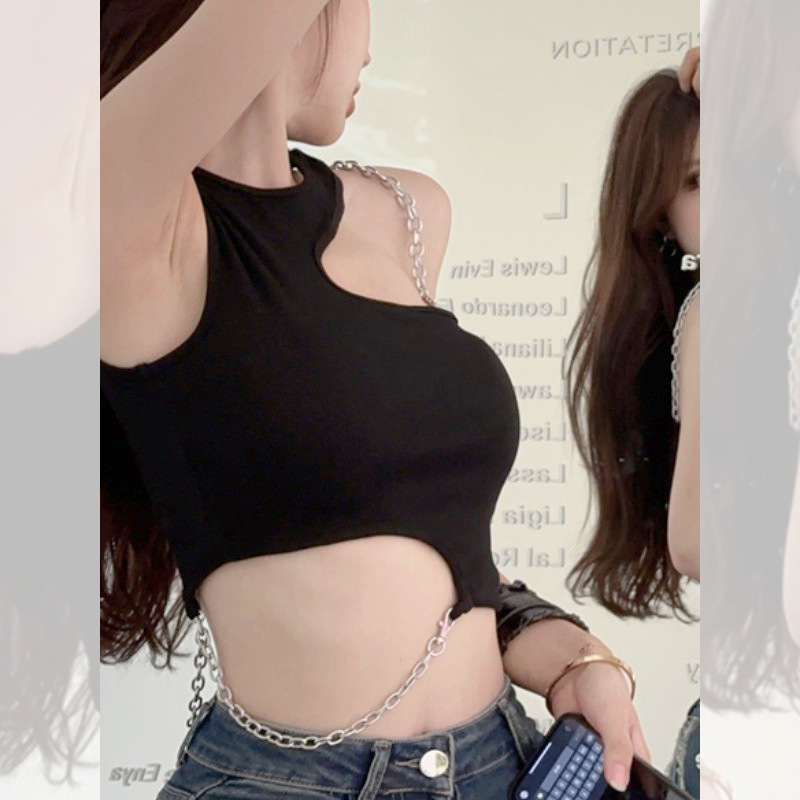 【月销10万】甜辣风不规则设计感链条显白露脐美背背心外穿上衣