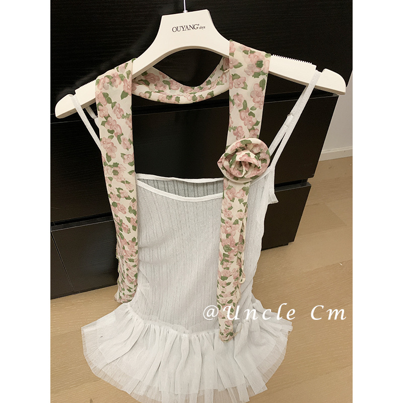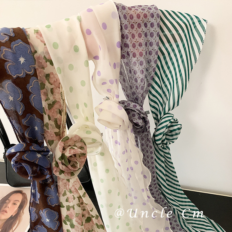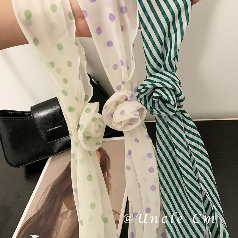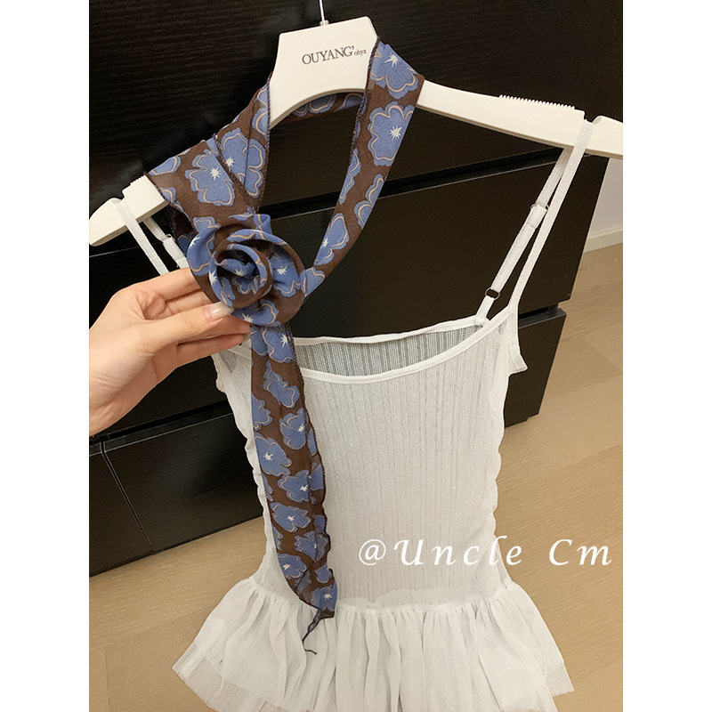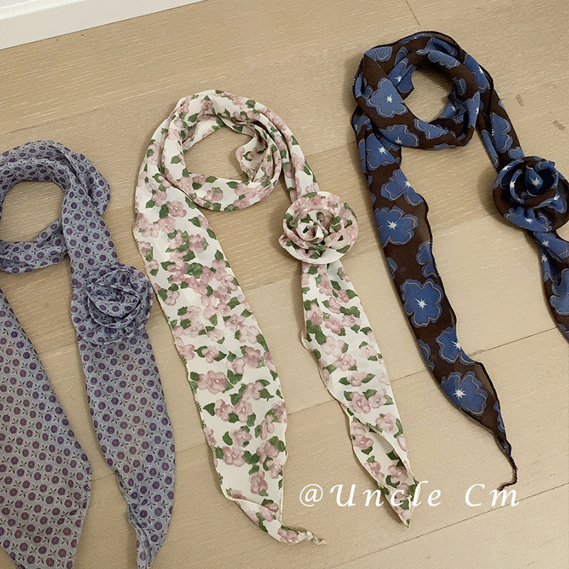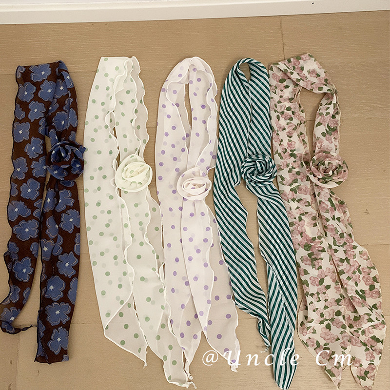 高级感花朵丝巾女2025年新款百搭印花系脖配饰薄款绑发长条颈带潮