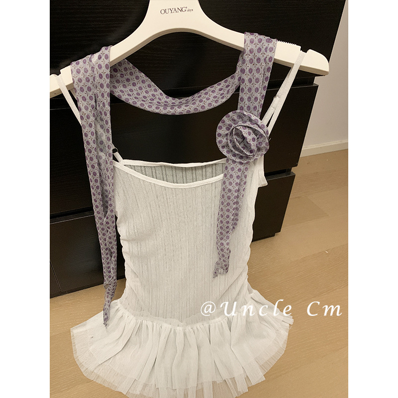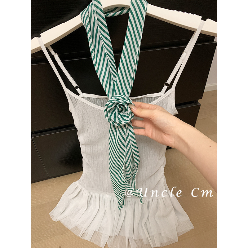 高冷御姐风漂亮气质灰白斜条纹吊带裙慵懒风连衣裙新款女夏季
