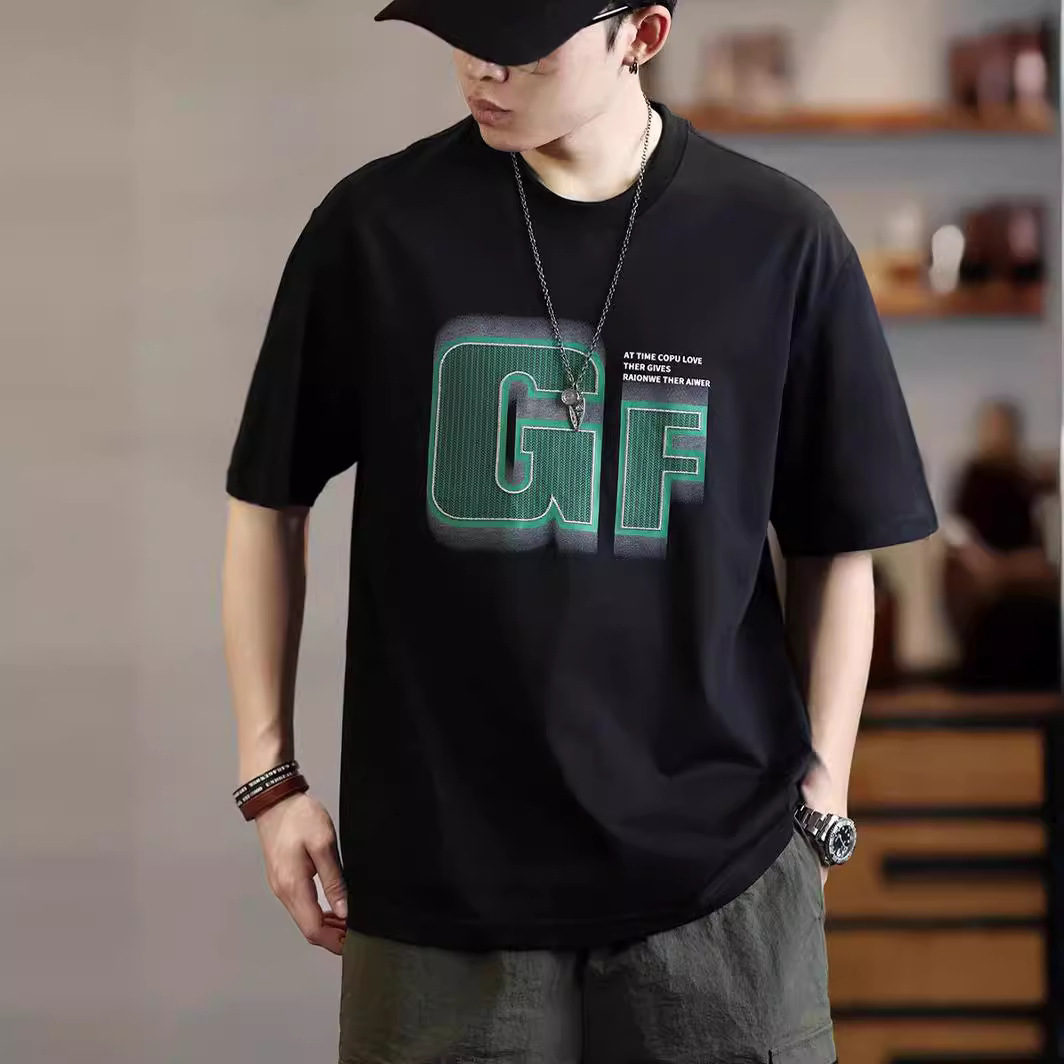 潮牌字母印花短袖T恤男士夏季新款美式重磅宽松圆领半袖体恤