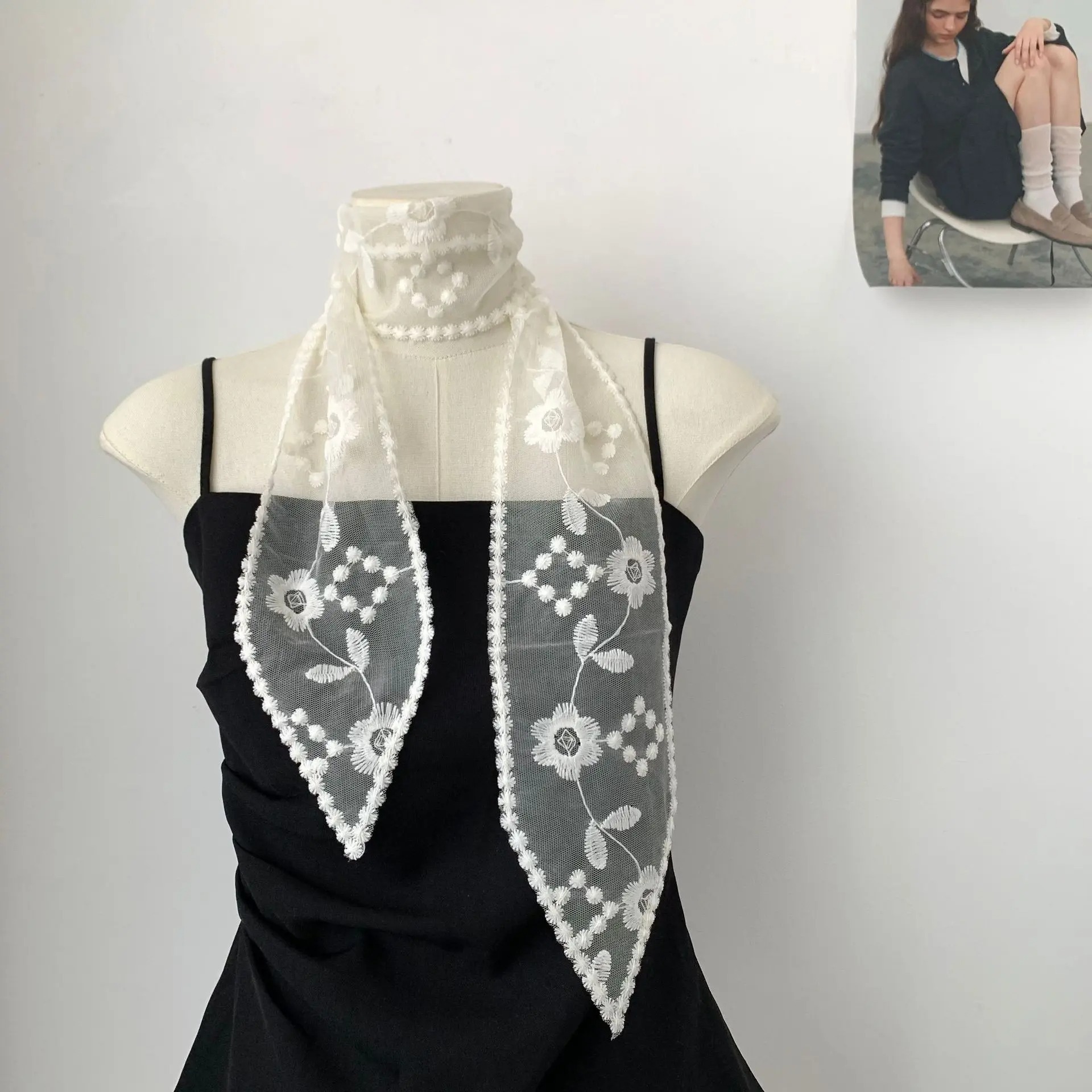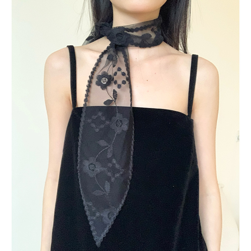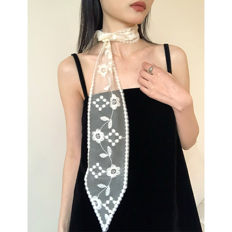 小丝巾颈带复古蕾丝飘带高级感发带长条丝带女装饰围巾项链编发潮