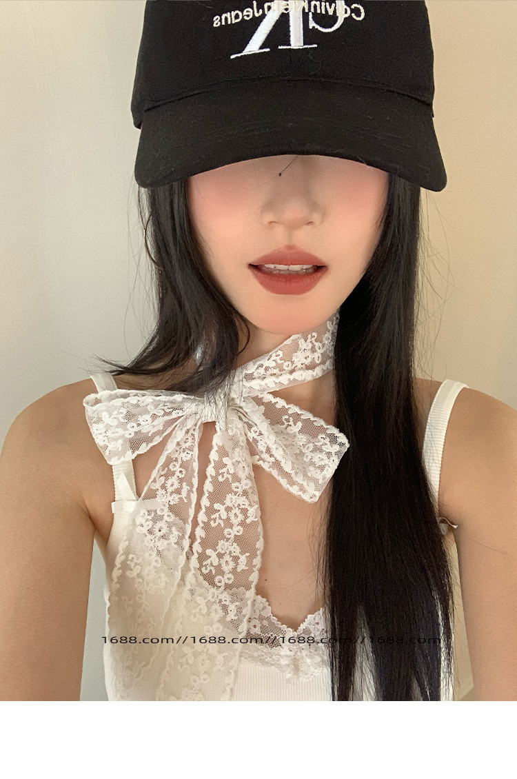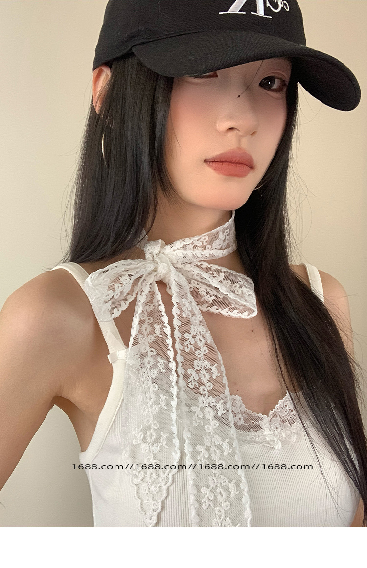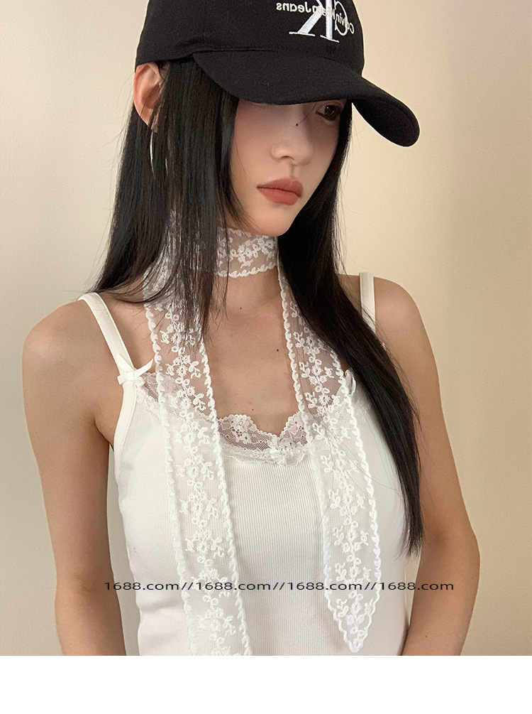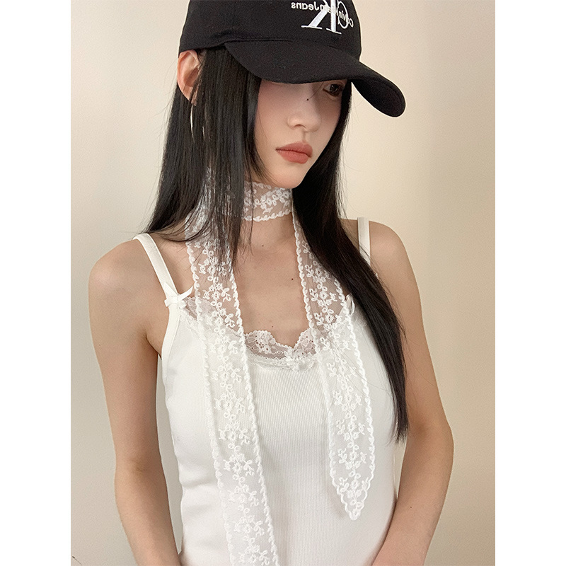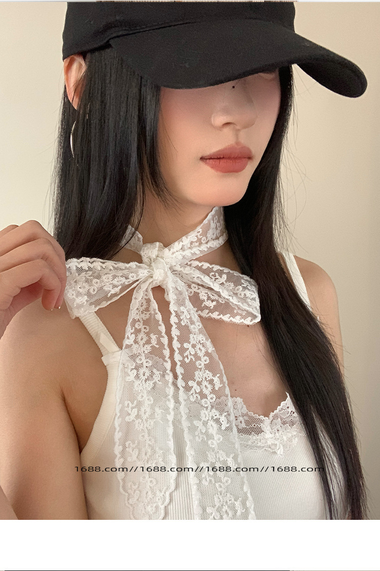 韩系氛围感白色蕾丝飘带女2025年新款长条丝巾气质颈带小围巾装饰