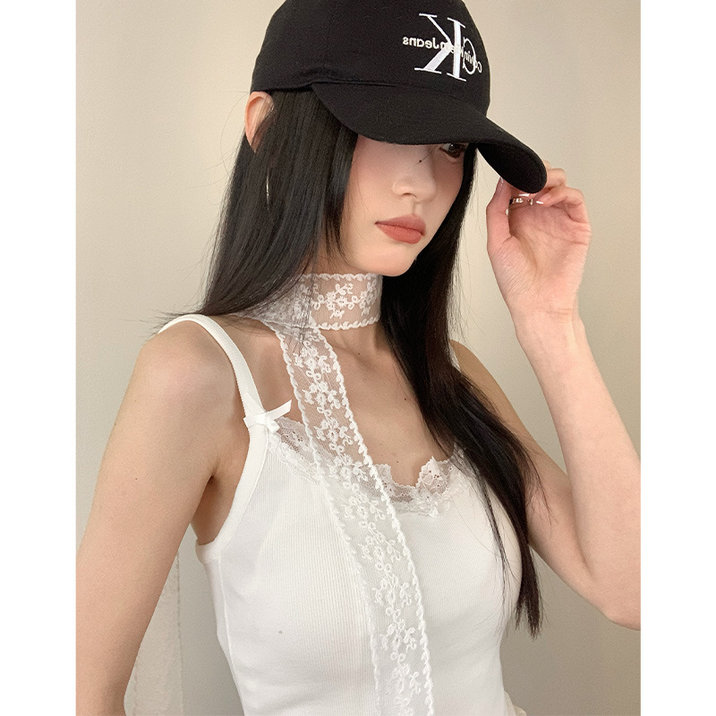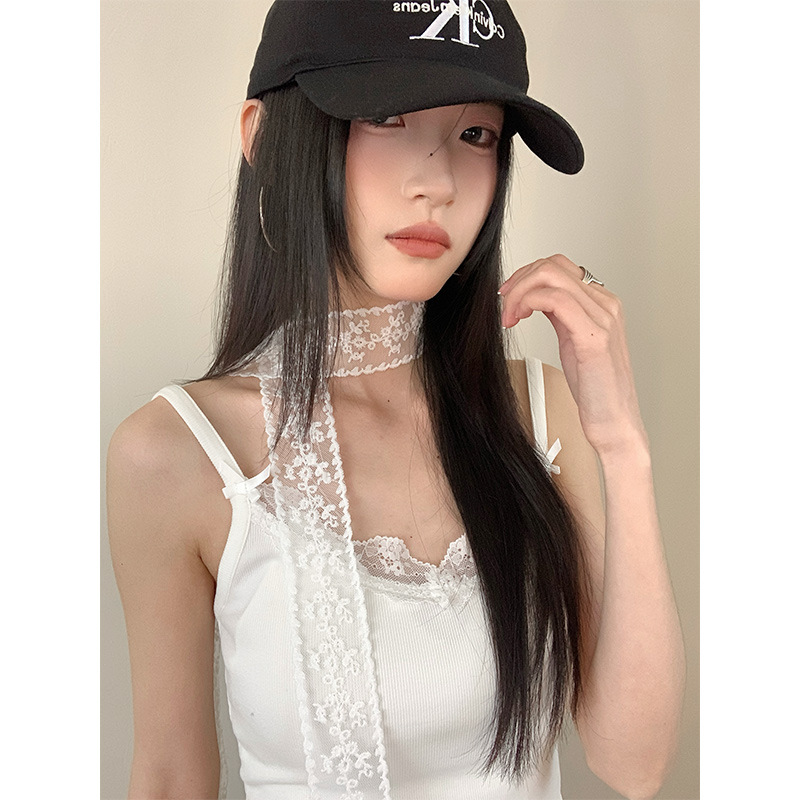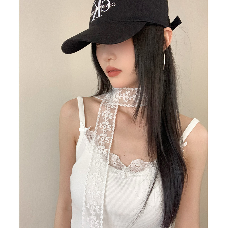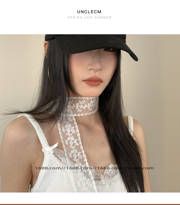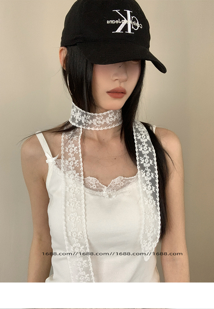 韩系氛围感白色蕾丝飘带女2025年新款长条丝巾气质颈带小围巾装饰
