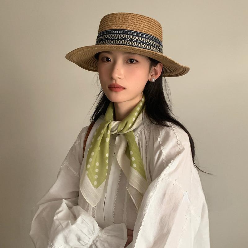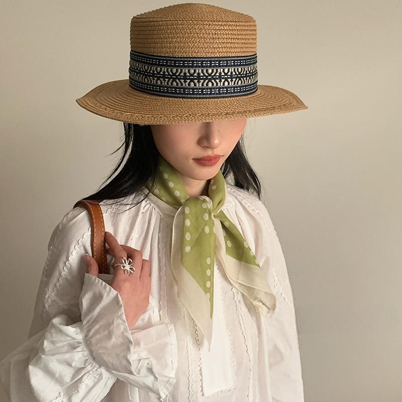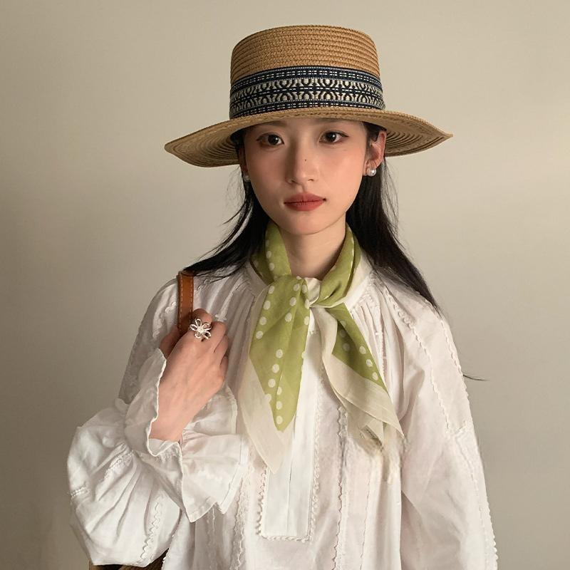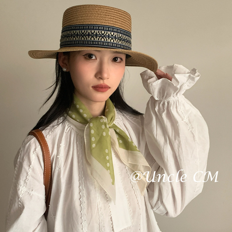 法式绿色波点丝巾女夏季薄款系脖领巾防晒护颈小方巾高级感小围巾