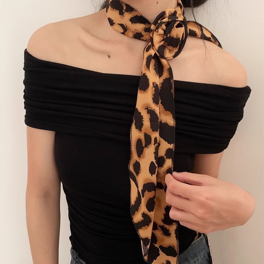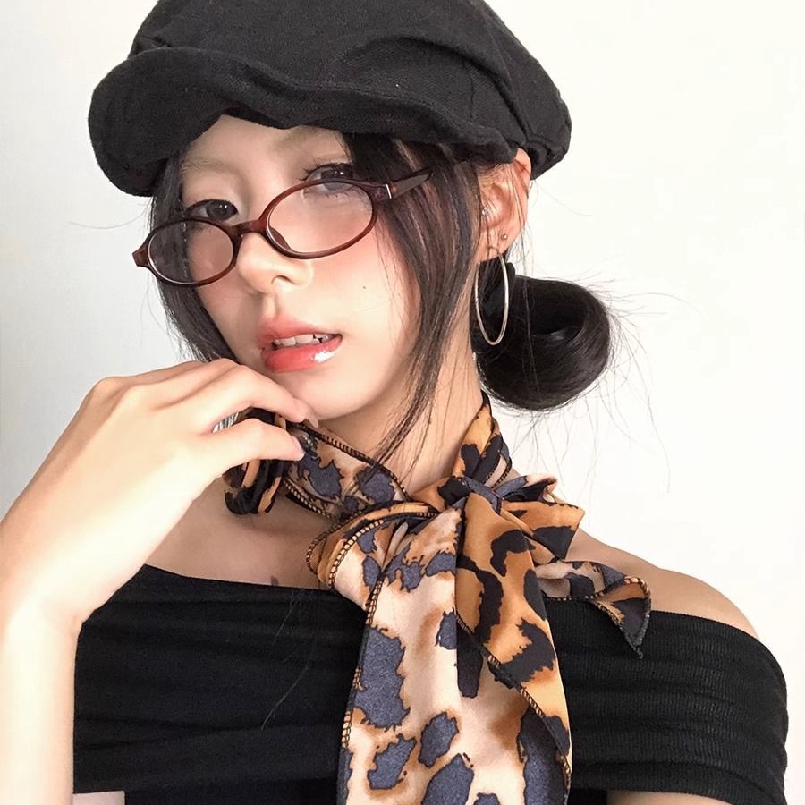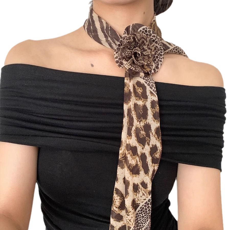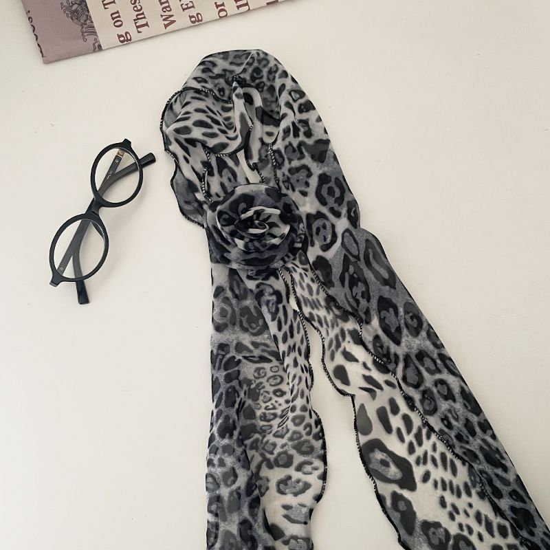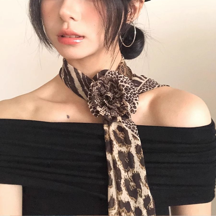 美式千禧辣妹风豹纹玫瑰花丝巾女甜酷时髦亚文化 y2k薄款围巾配饰