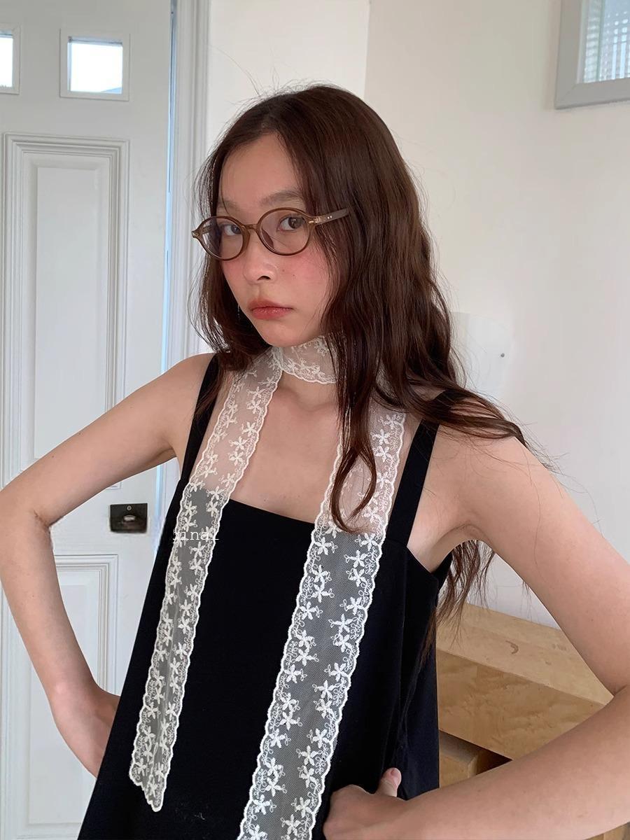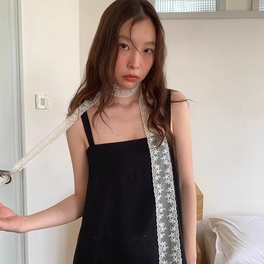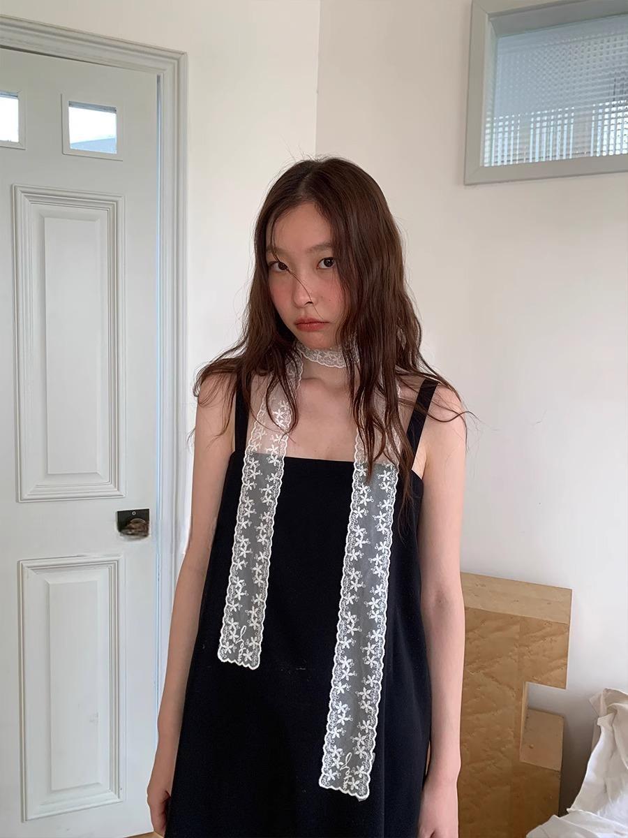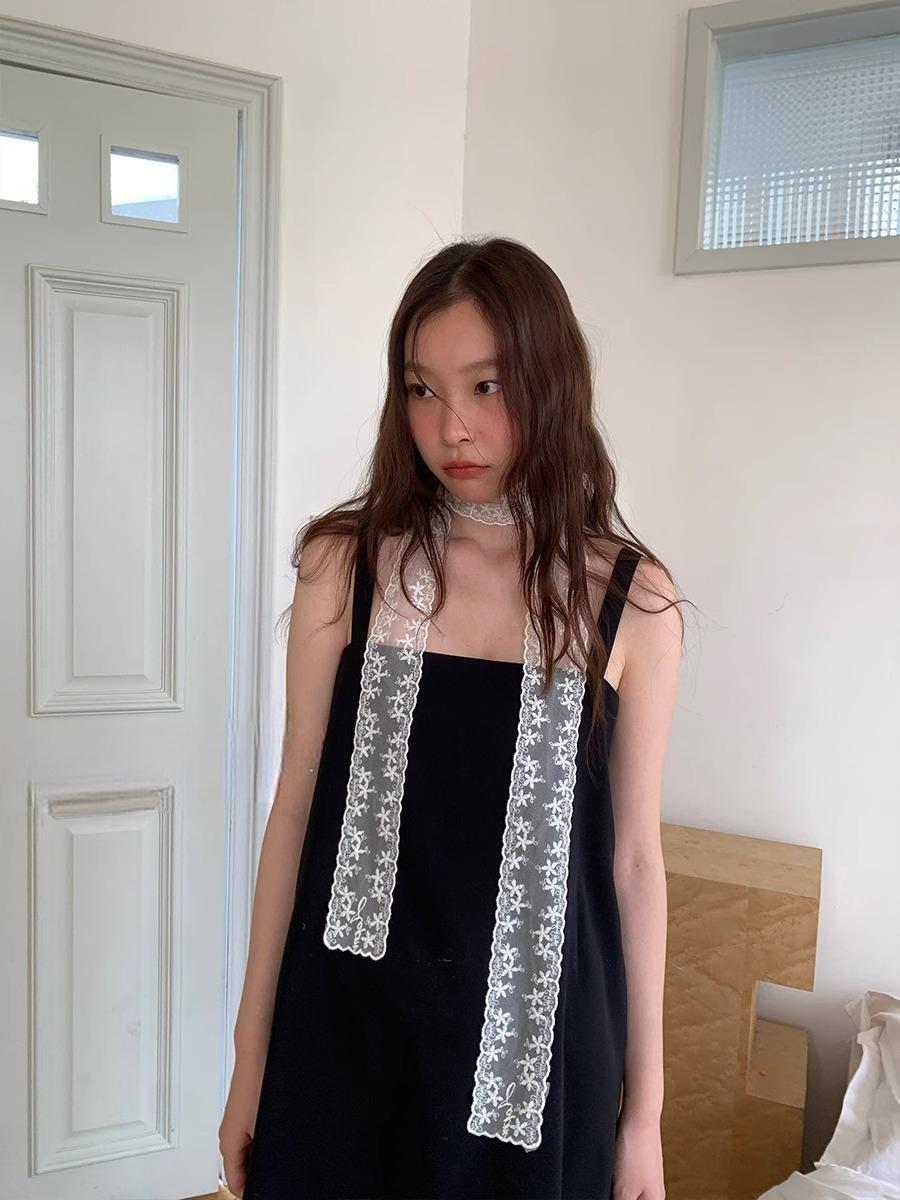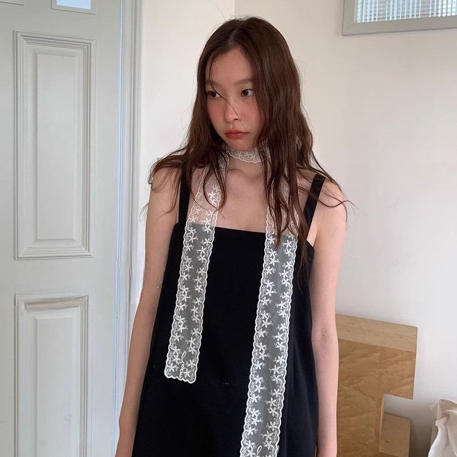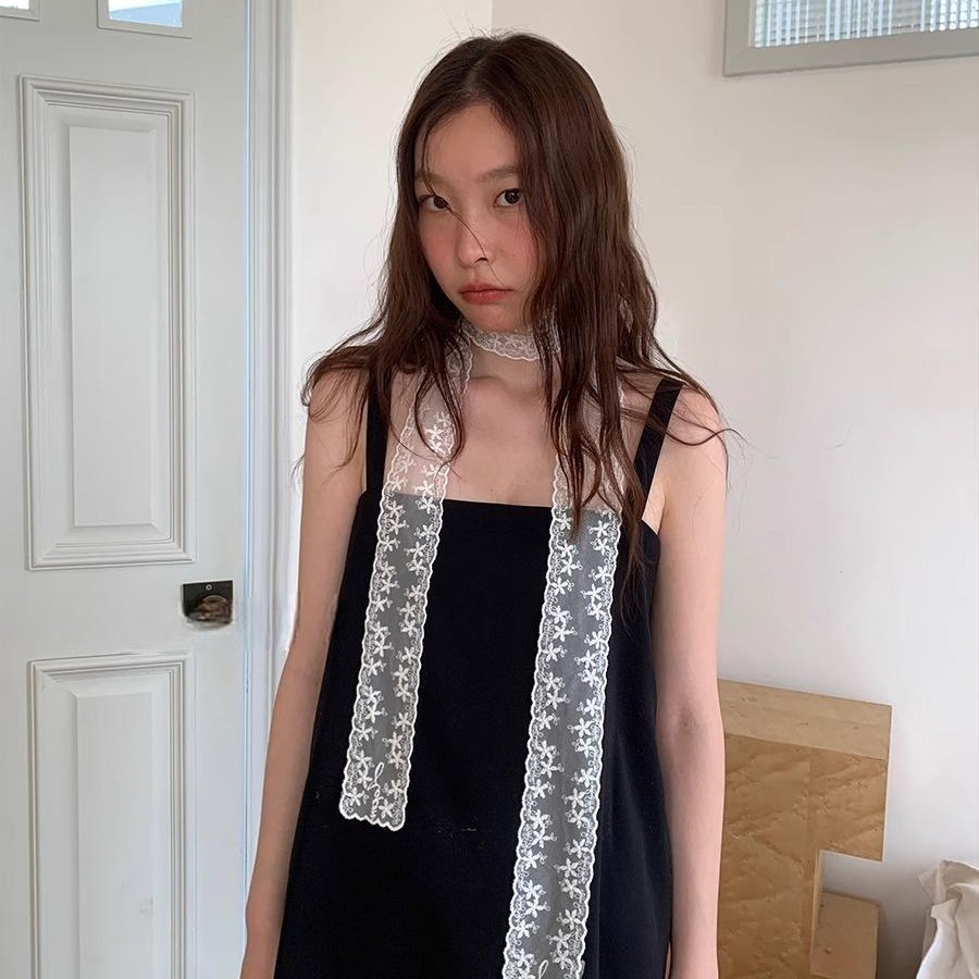 丝巾韩国新款蕾丝花卉细围巾女春夏百搭装饰细窄领巾腰带ins简约