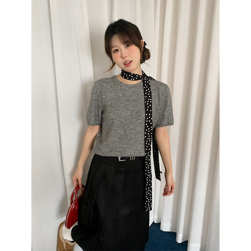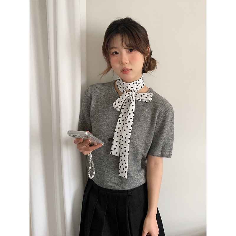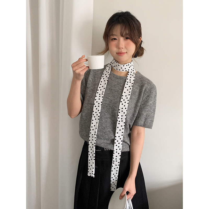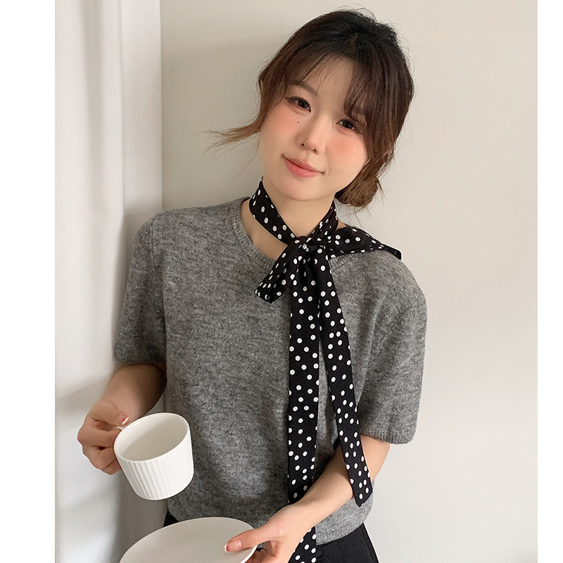 黑色波点丝巾女韩系复古气质2025新款百搭丝带薄款高级感围巾配饰