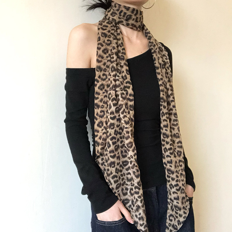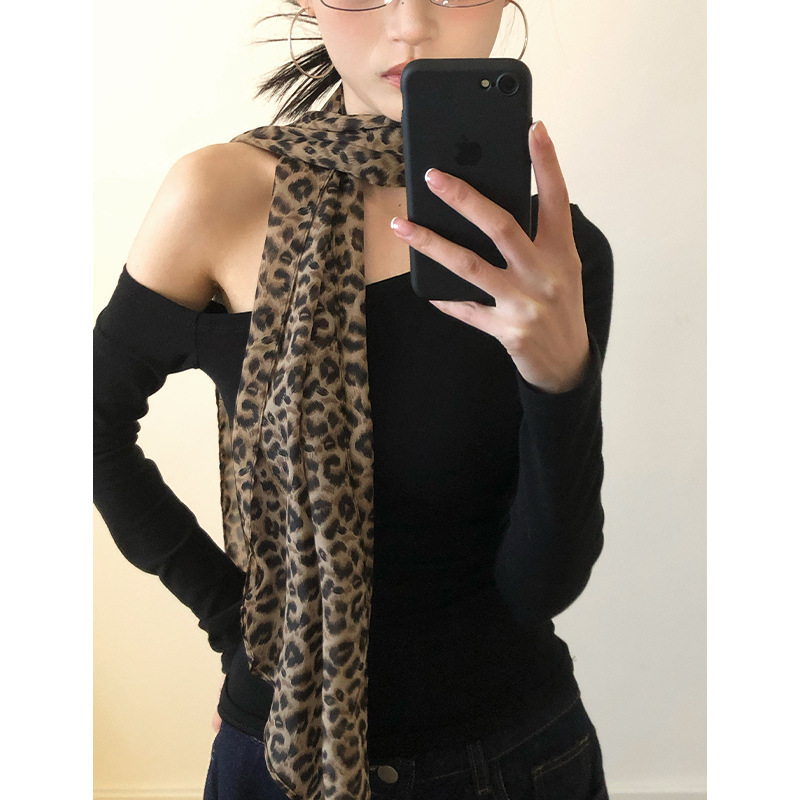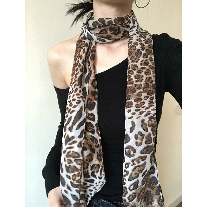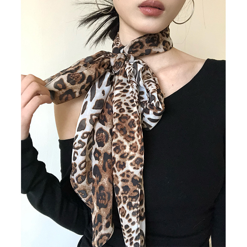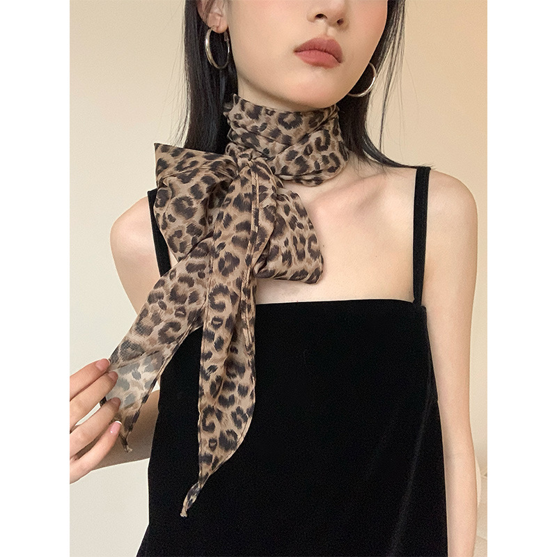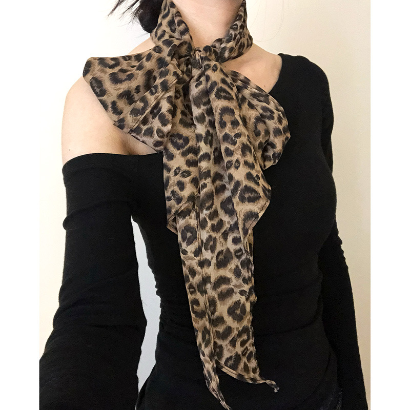 复古千禧风豹纹丝巾女辣妹风长条系脖领巾围巾甜酷高级感飘带配饰