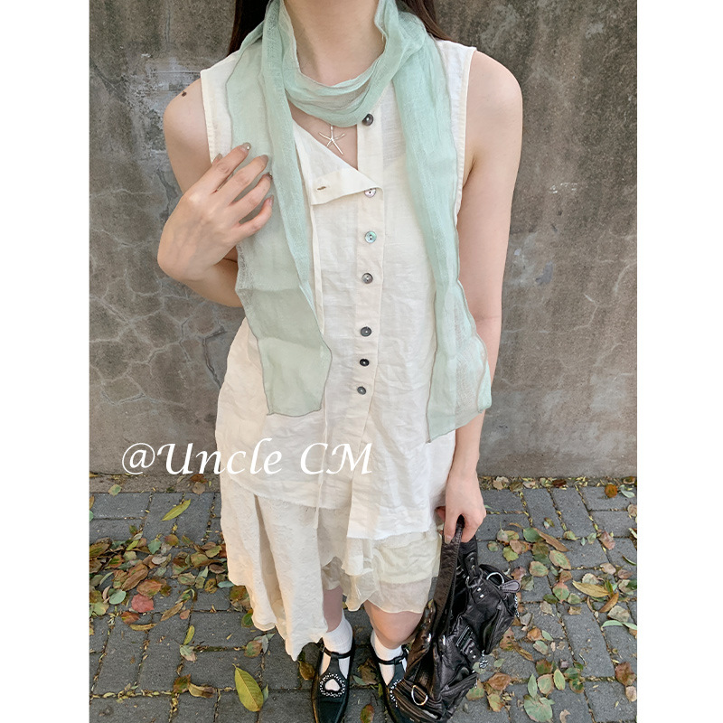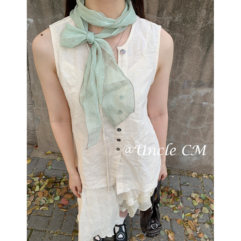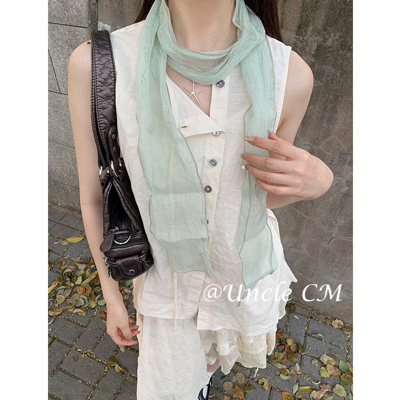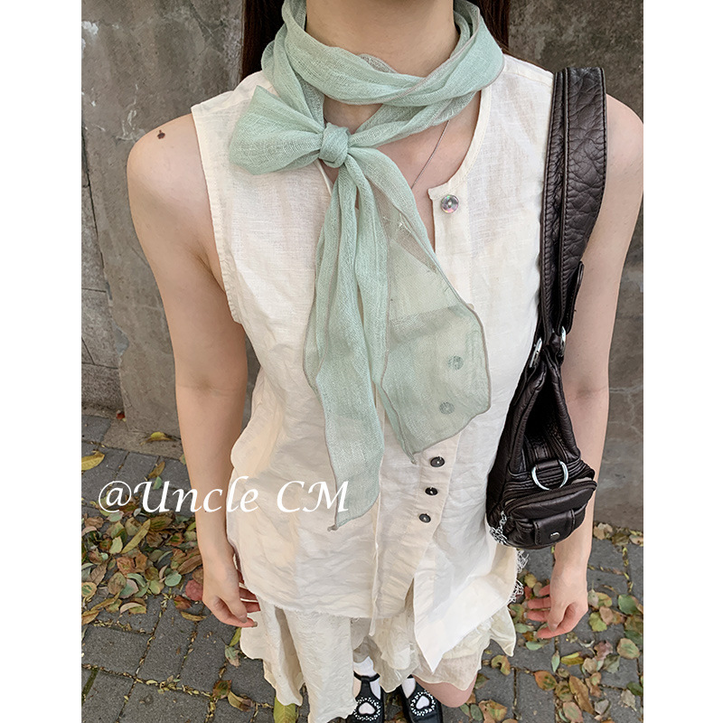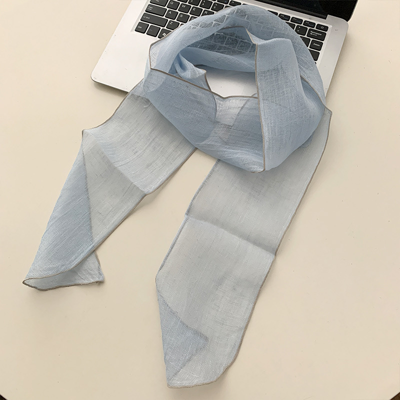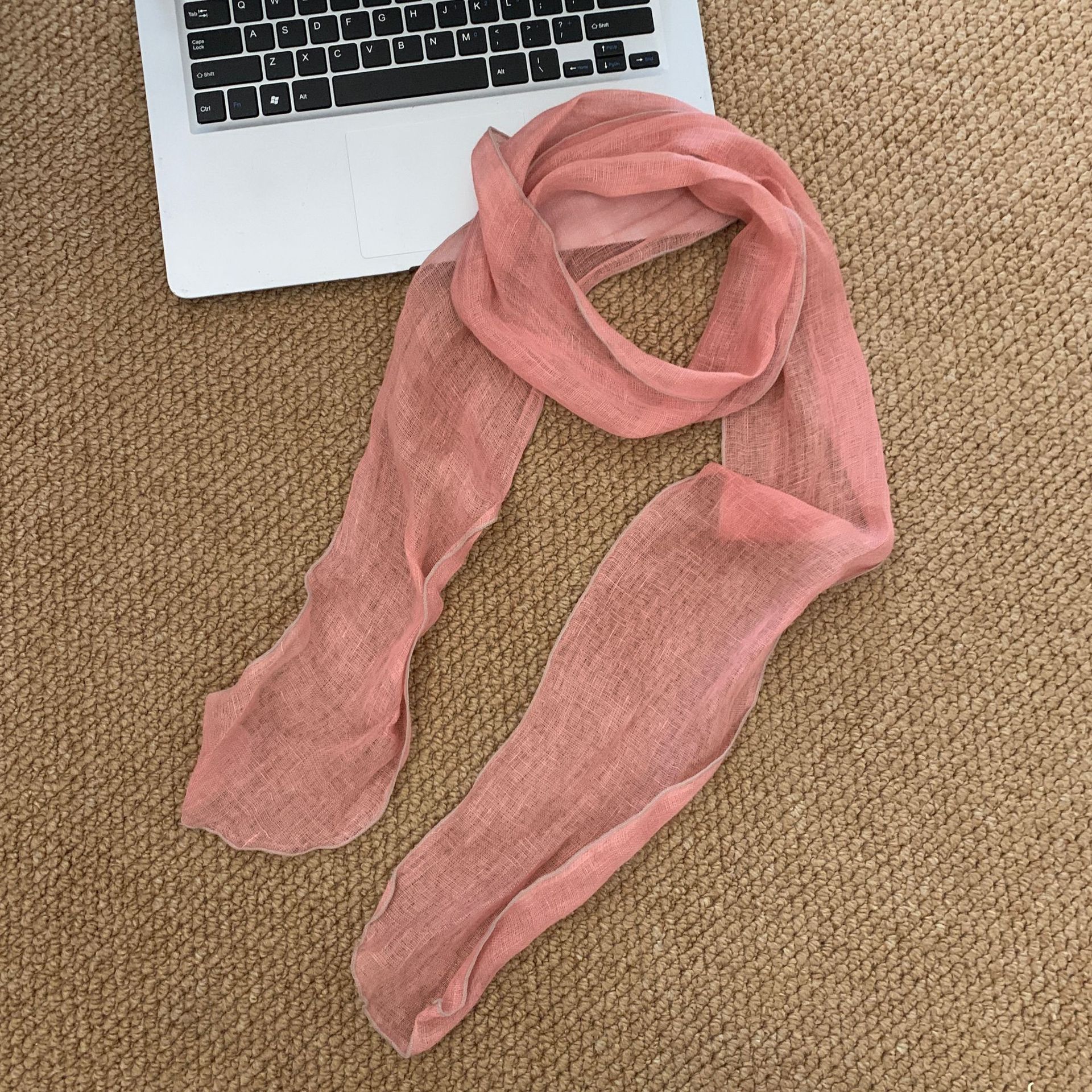 复古清新亚麻丝巾女夏日系简约透气百搭文艺风氛围感系颈薄款领巾