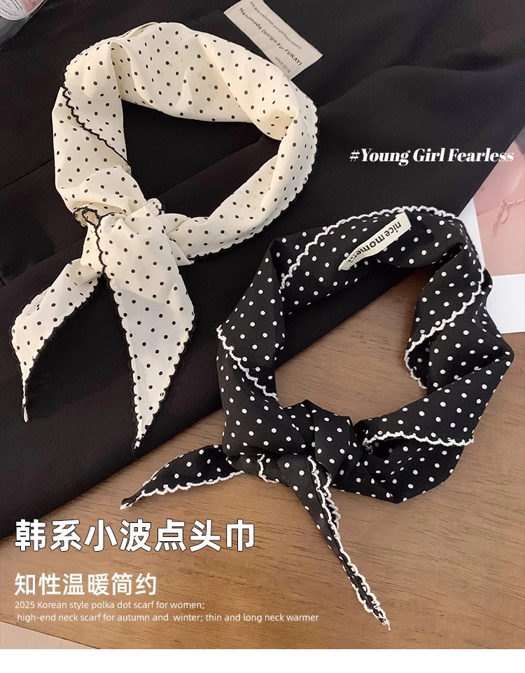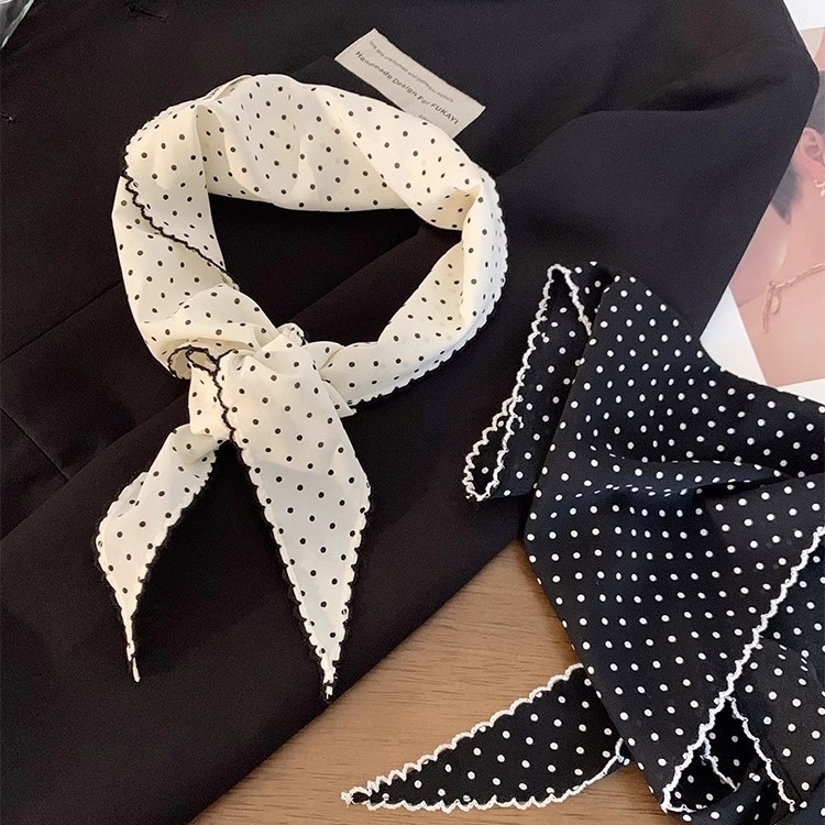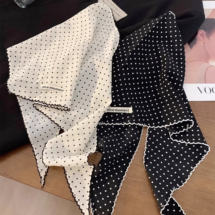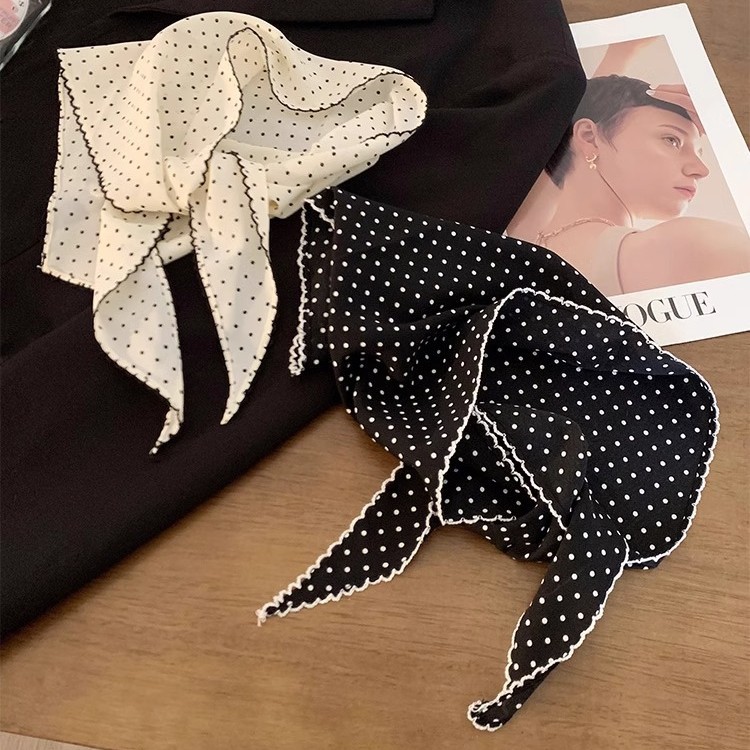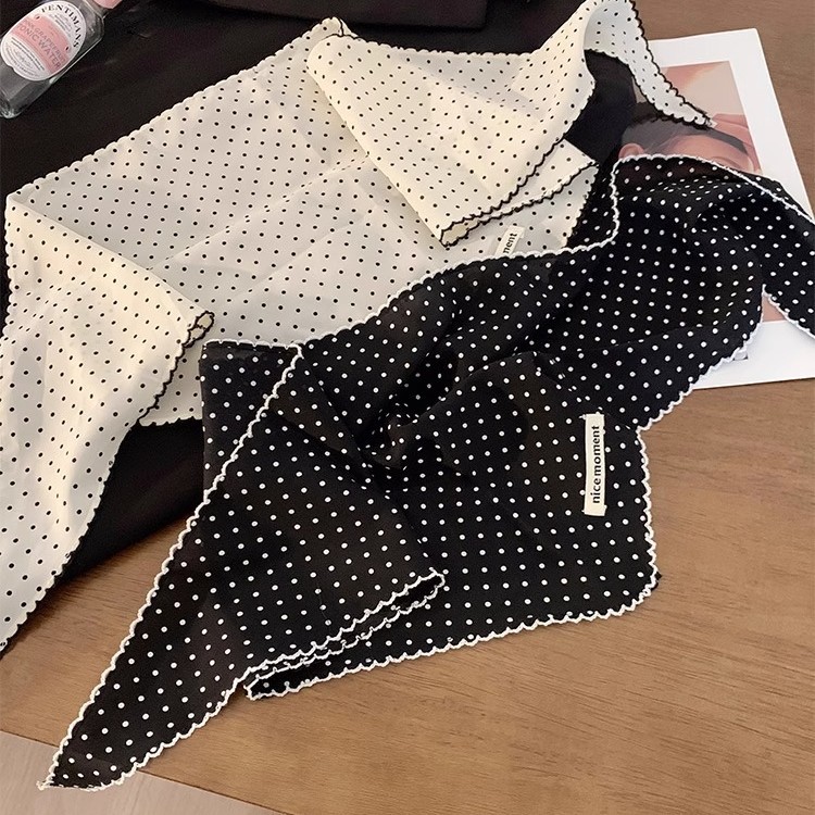 韩系波点三角丝巾女夏季时髦百搭薄款系脖领巾高级感出游绑发头巾