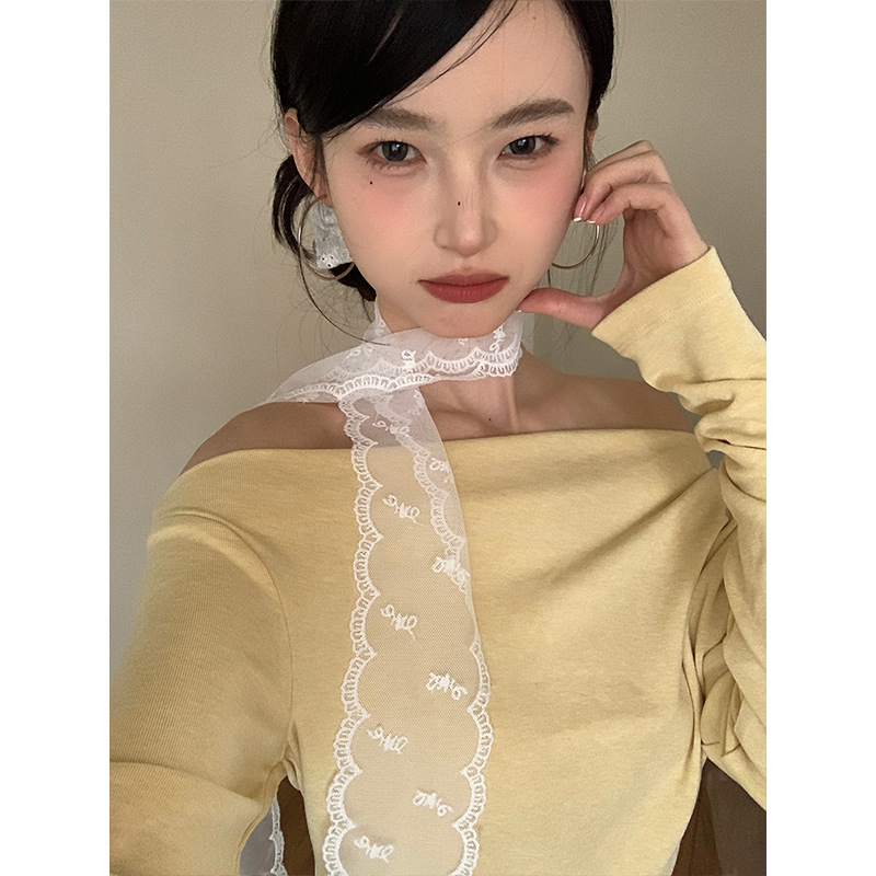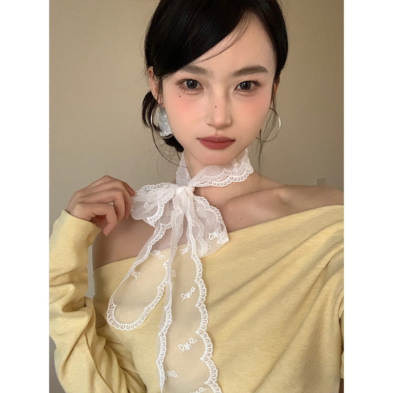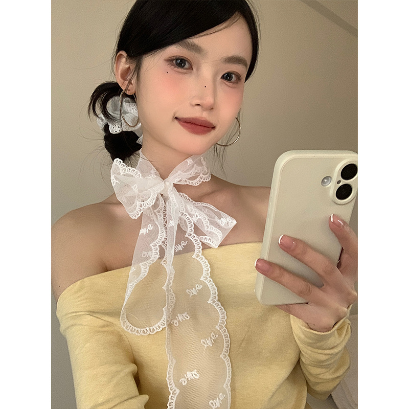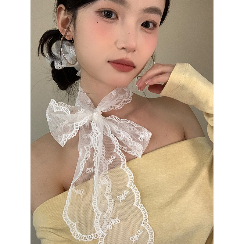 白色蕾丝刺绣长条丝巾女超仙氛围感系脖绑发飘带法式叠戴发绳头饰