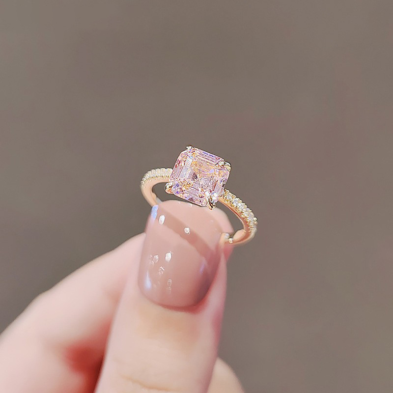 日系可爱少女粉仿水晶戒指女网红新款可调节大小食指戒指环