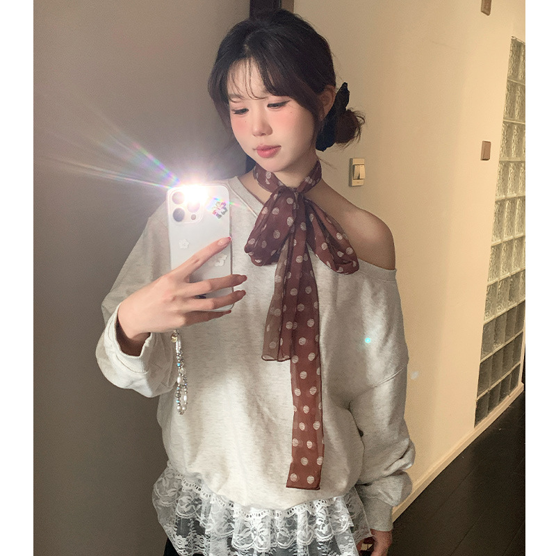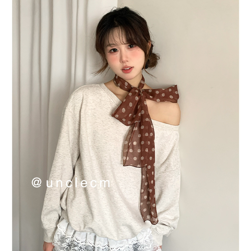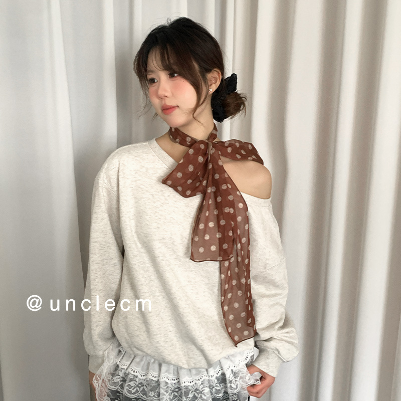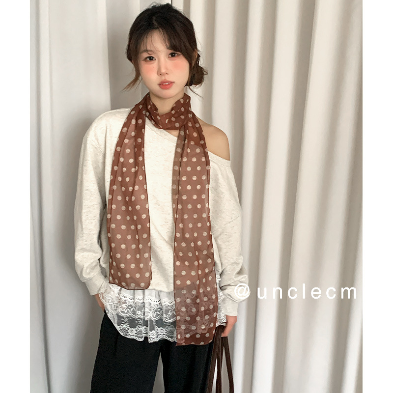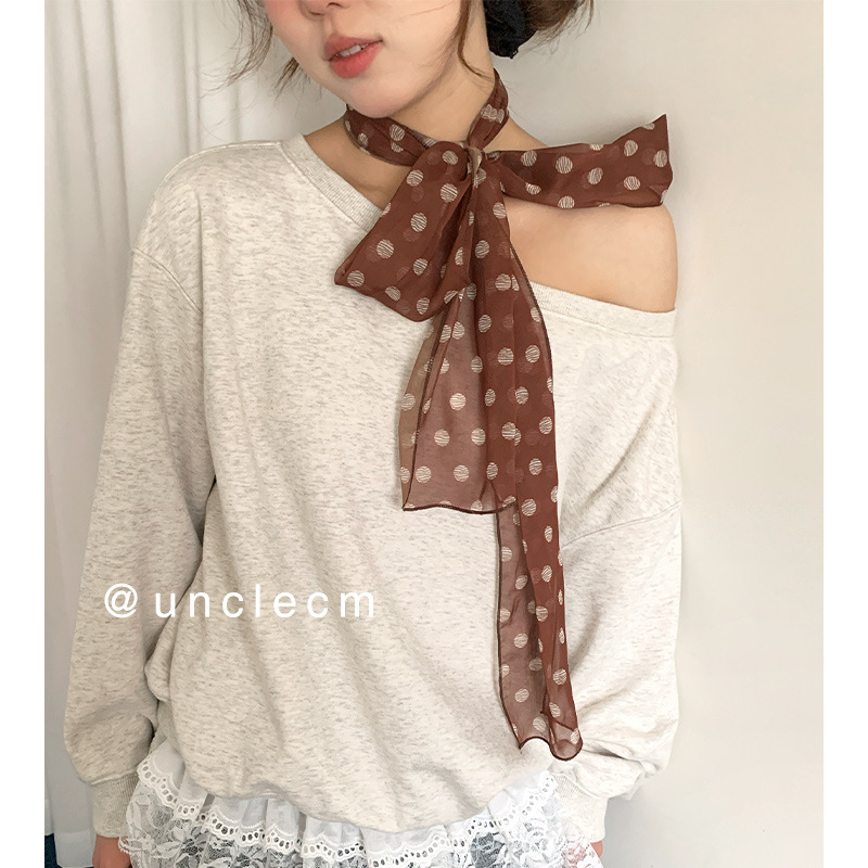 法式高级感棕色波点丝巾女2025新款气质百搭飘带发带长条围巾配饰