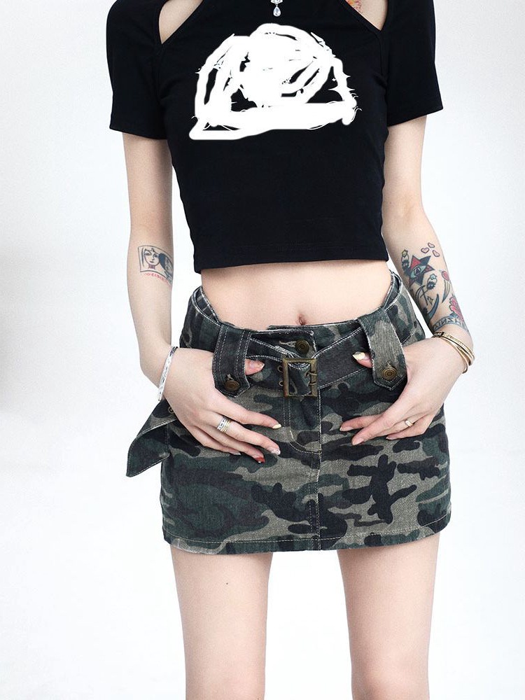美式修身简约休闲迷彩包臀裙女复古工装小个子低腰字辣妹短裙