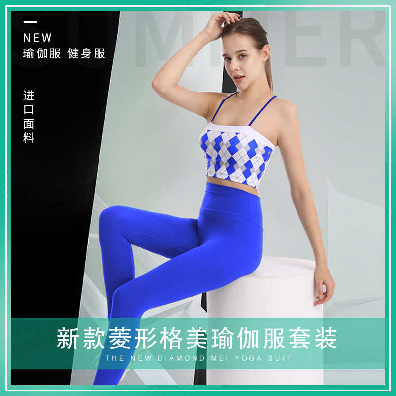 爆款文胸菱形格美背瑜伽服两件套 裸感运动内衣健身细带背心套装