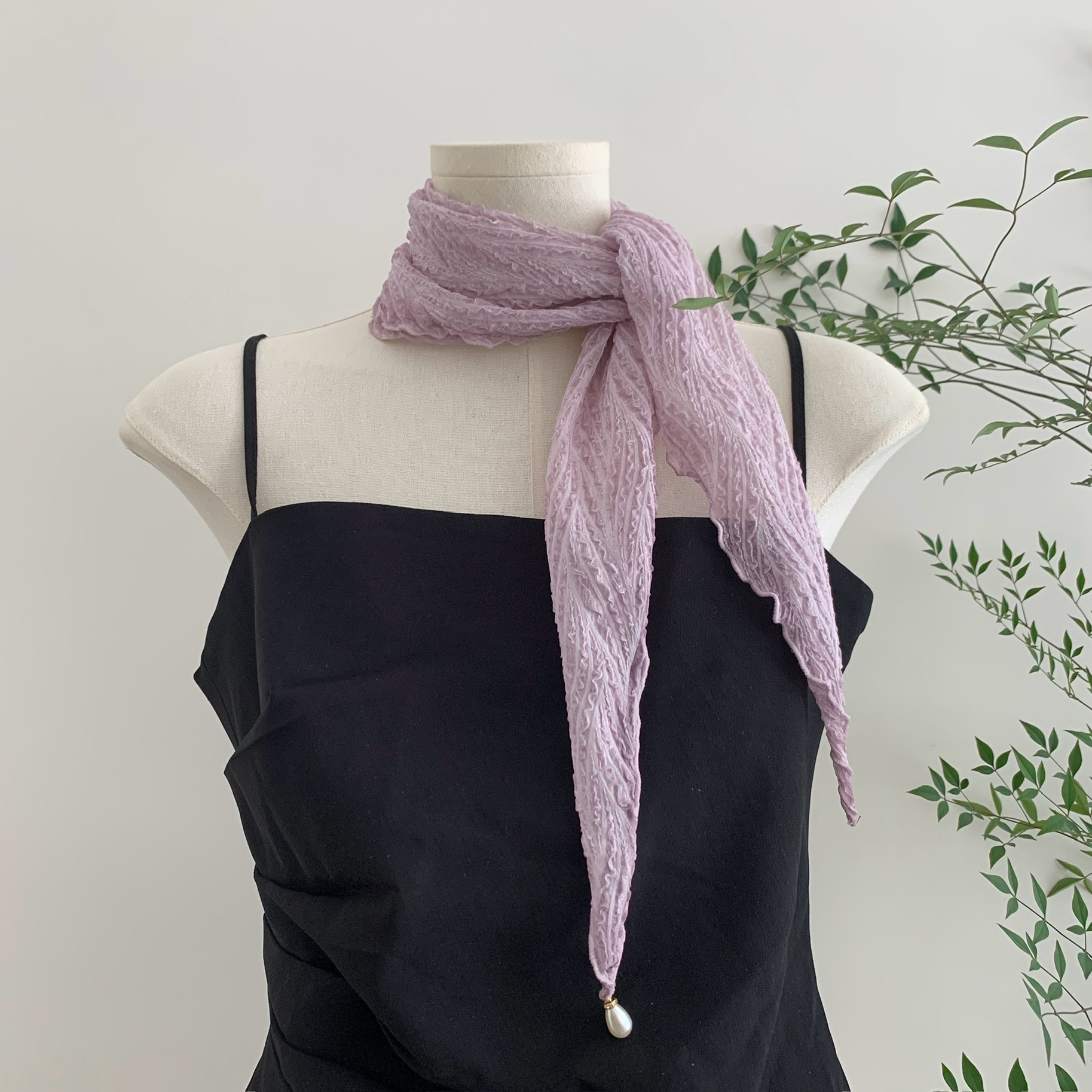 2025新款春季装饰菱形巾时尚百搭挂坠小领巾法式优雅女士发带飘带