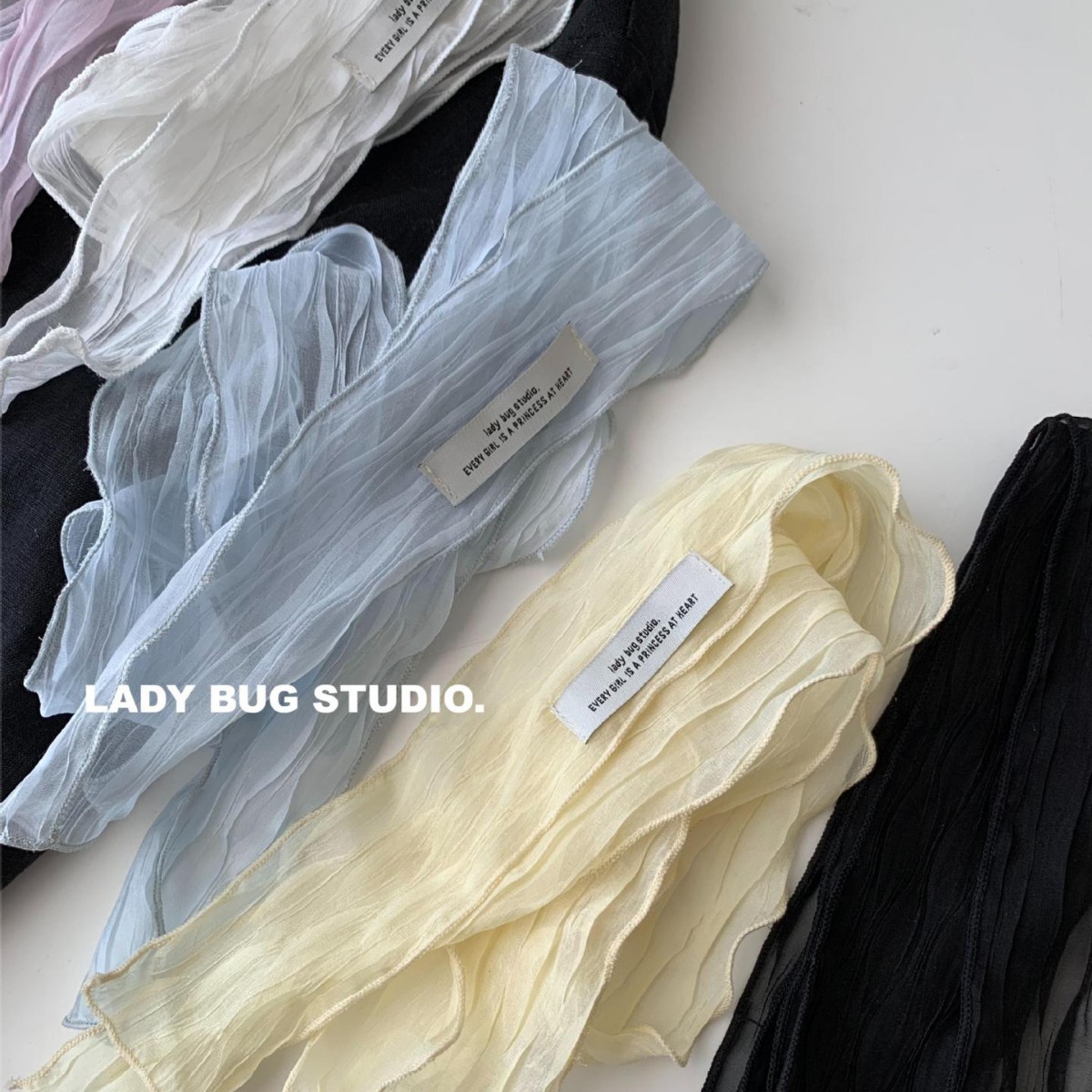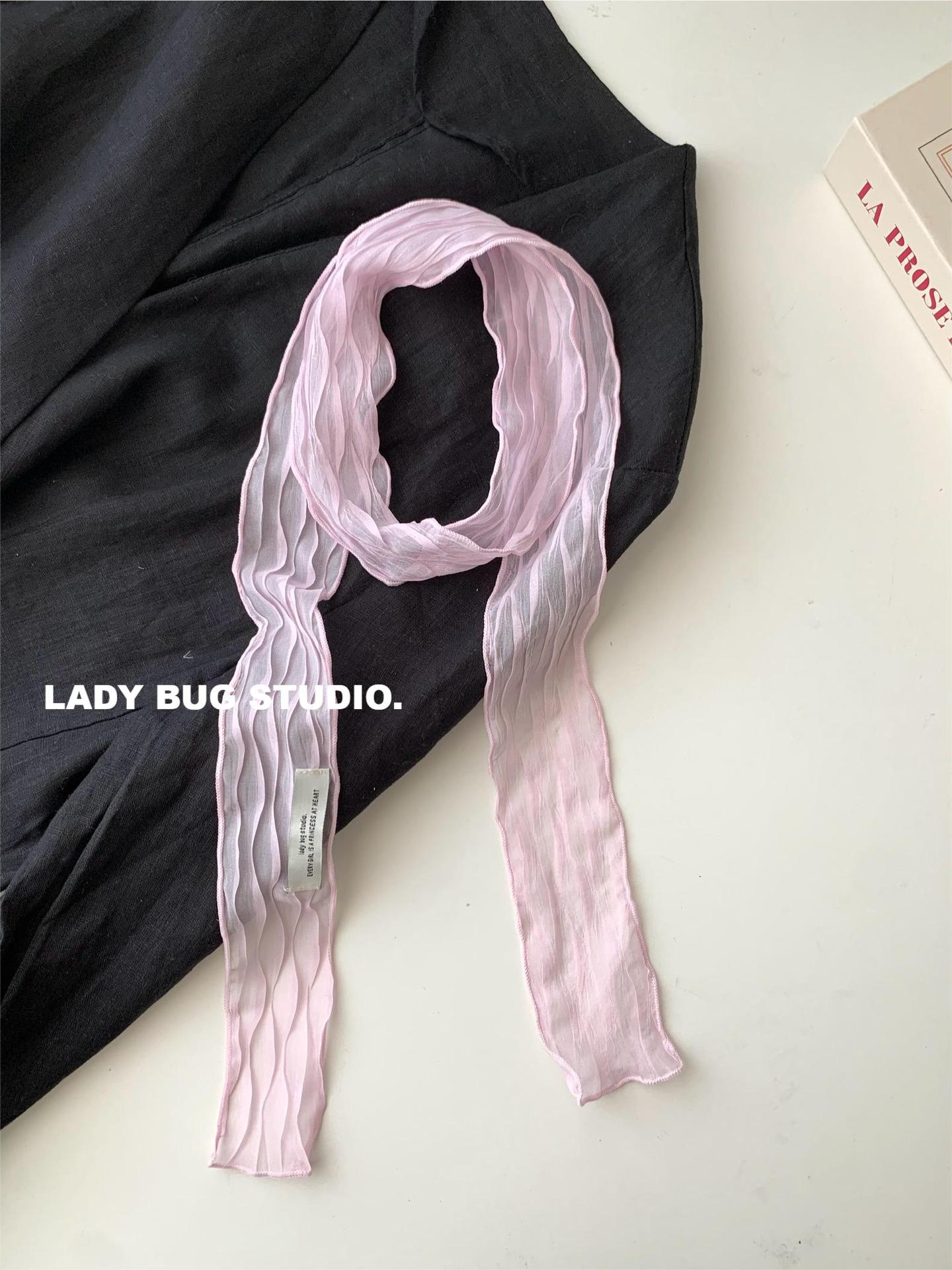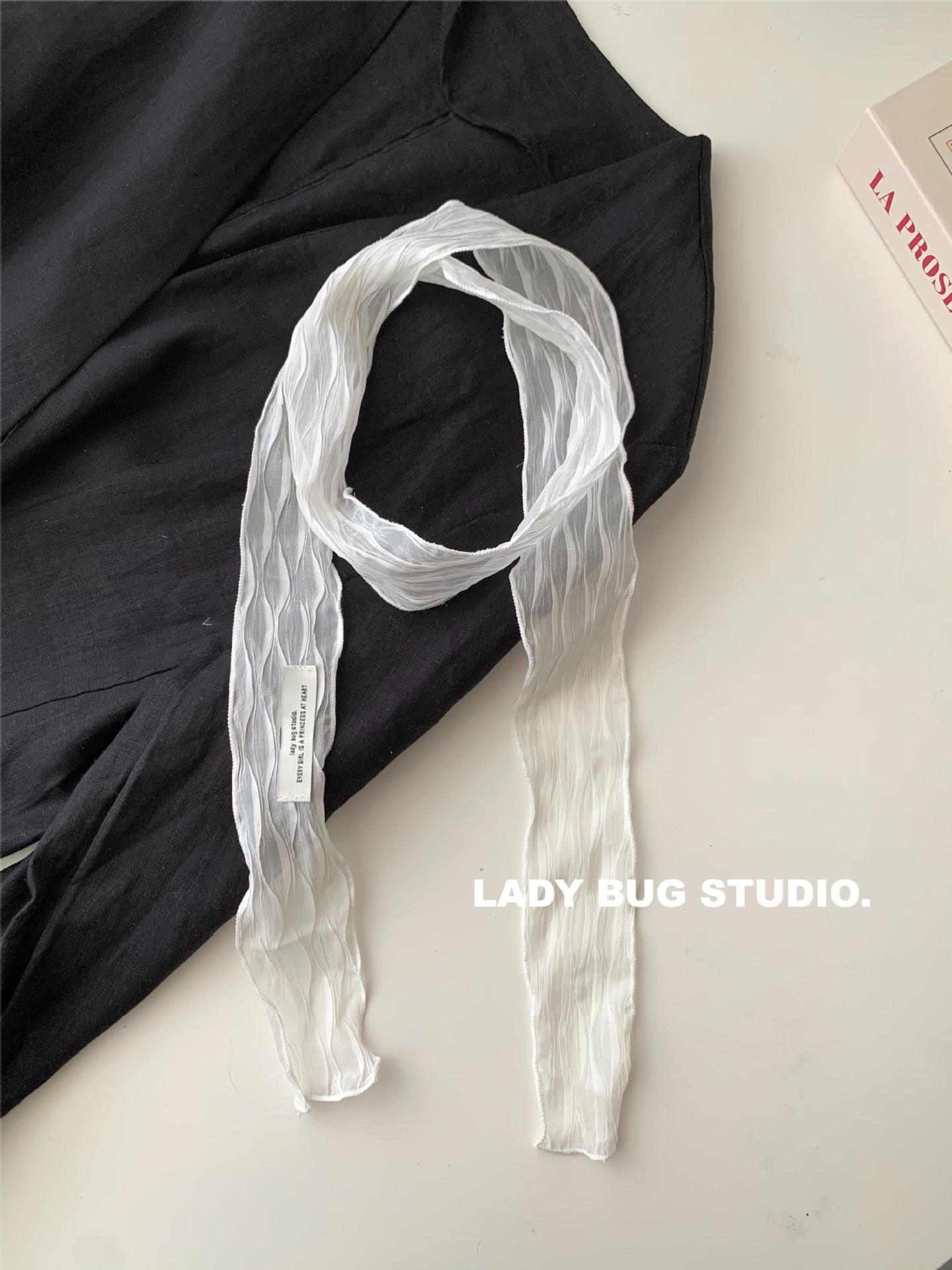 纯欲风~纯色褶皱丝巾发带辣妹少女春夏季新款百搭装饰领巾2025