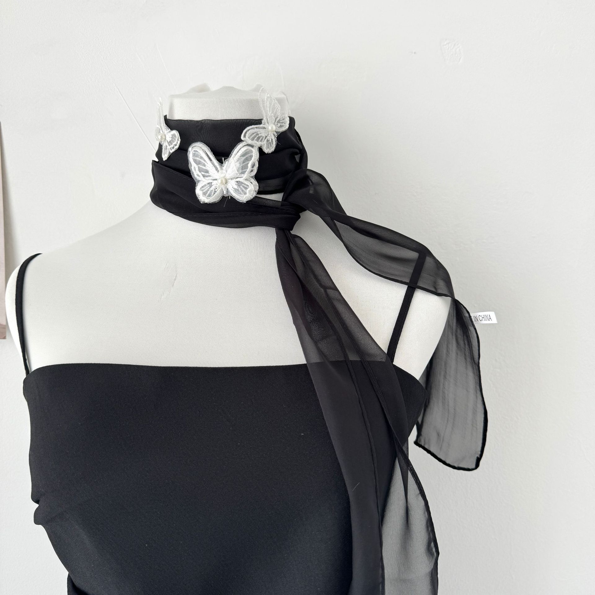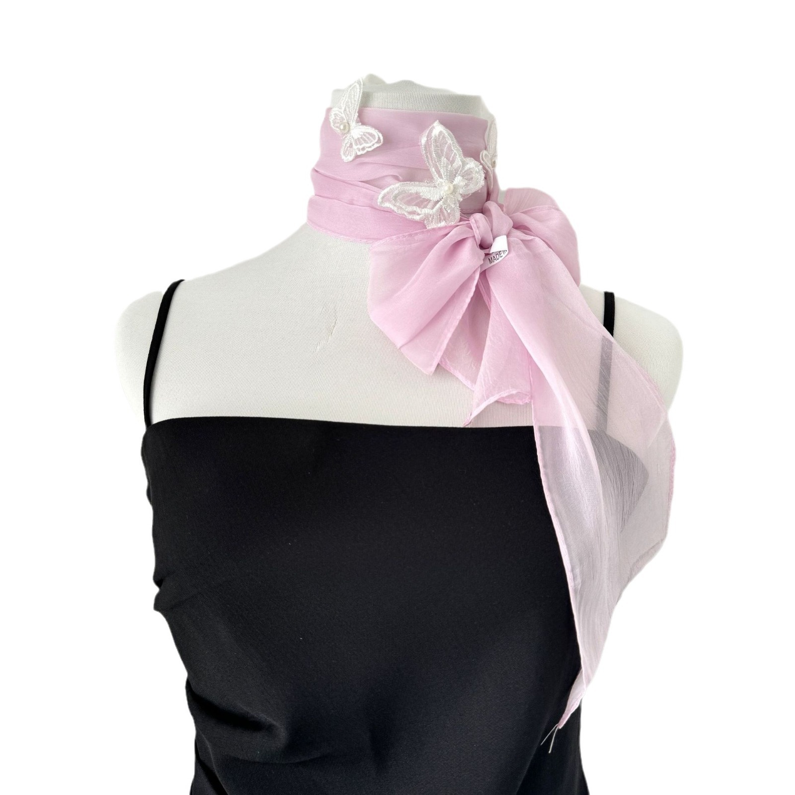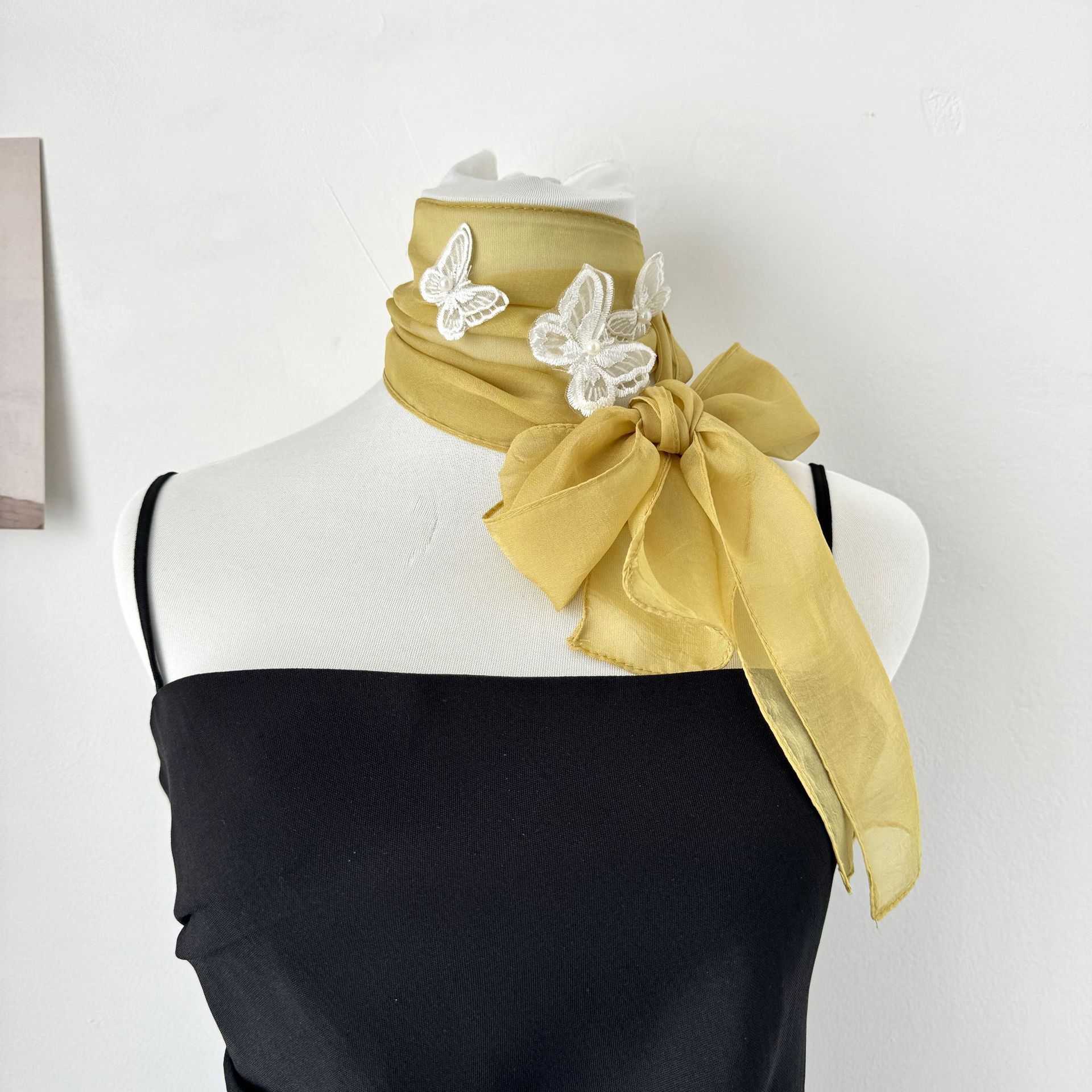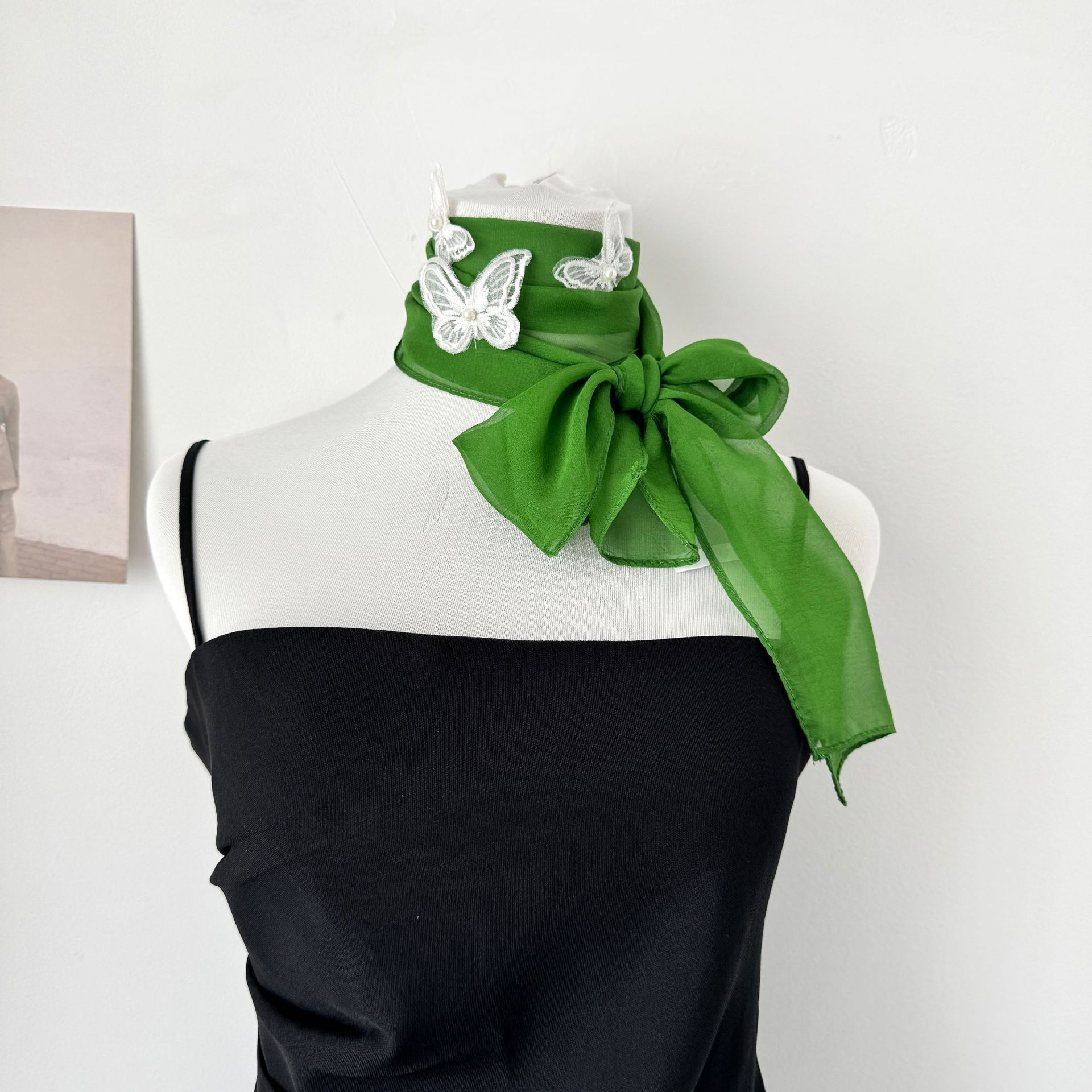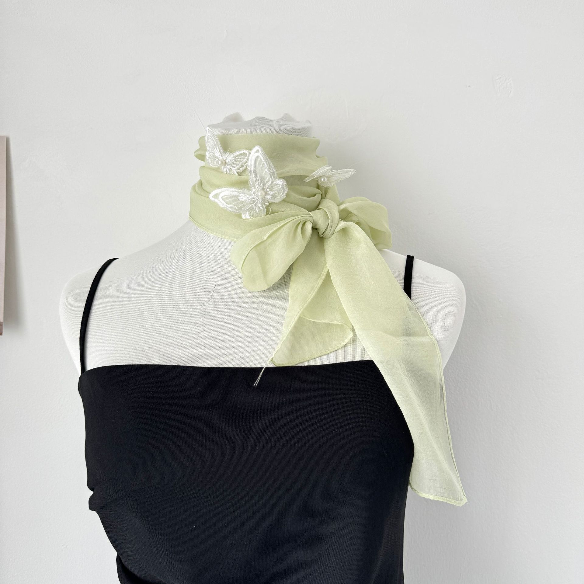 韩国ins 新款时髦小众原创设计法式蝴蝶长条小丝巾纯色飘带发带女